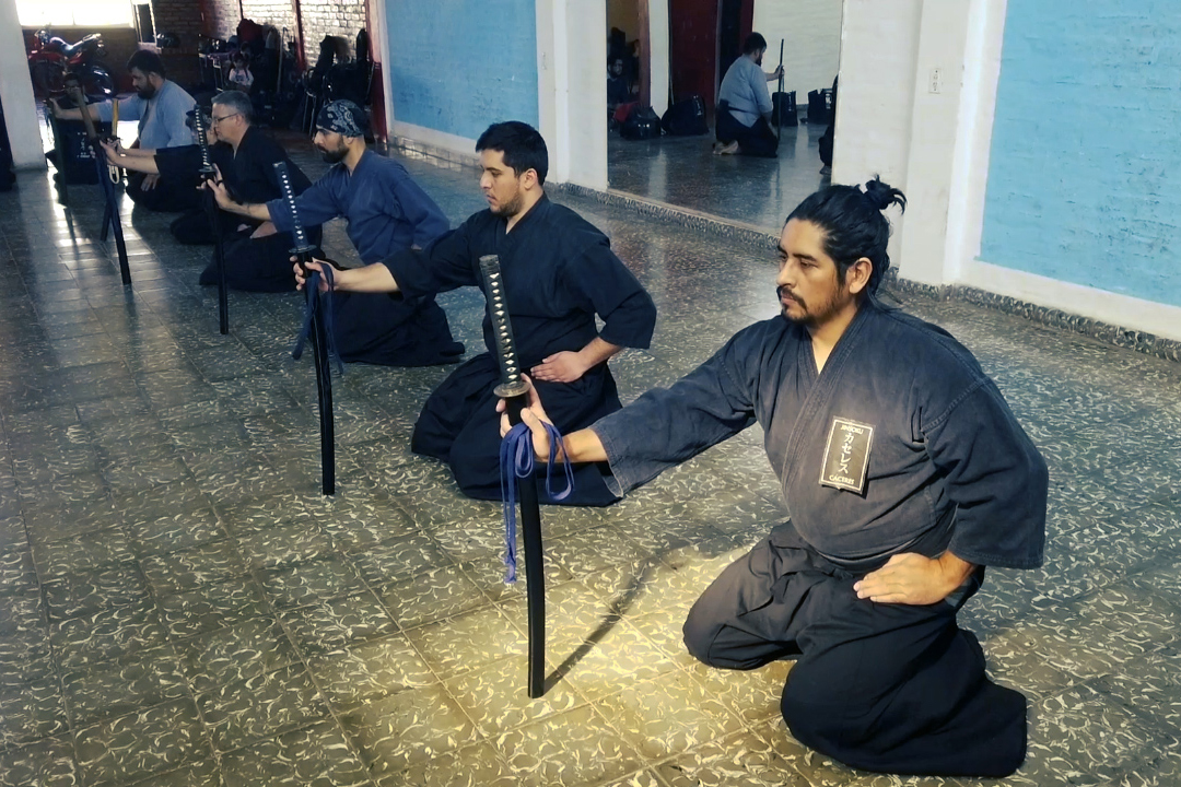 Al llegar al dojo, recibe a este medio, el sensei Marcelo Ruíz. De estatura baja y ojos profundamente celestes que observan de tal manera que una mirada es una estocada de sable, Ruiz da las instrucciones a sus estudiantes para comenzar la clase. Seis tipos robustos, de diferentes edades y una niña de unos 13 – todos vestidos con el uniforme japonés azul oscuro y pantalones Hakama- se alinean a un costado, luego de saludar con una leve reverencia al espacio de práctica.