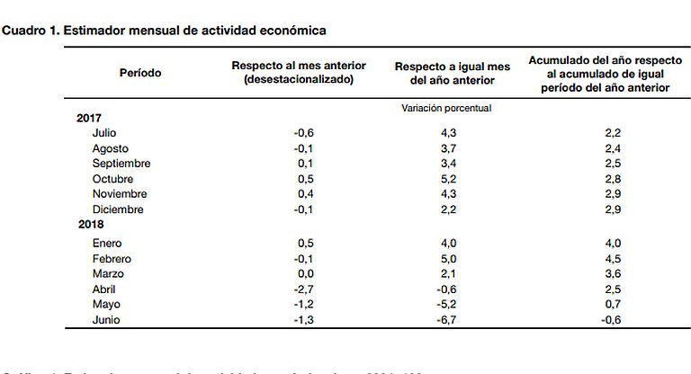 La actividad económica se derrumbó 6,7% en junio en forma interanual, lo que representa la mayor contracción en la era Macri, según informó este martes el Instituto Nacional de Estadística y Censos (INDEC). El mal resultado del sexto mes del año hizo que la actividad pasara a signo negativo de 0,6% en el año.