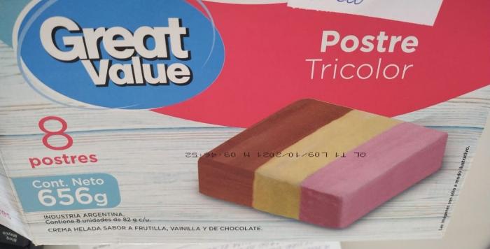 La prohibición de comercialización en toda la Argentina afecta a un lote del producto de la marca Great Value. El rótulo completo es el siguiente: "Crema Helada sabor frutilla, vainilla y de chocolate, Postre Helado tricolor Marca Great Value lote: QLT1 L 09/10/2021 M 09:46:52", de acuerdo a la descripción de la Disposición 1413/2020.