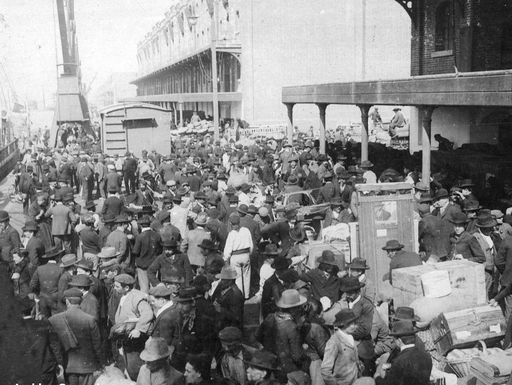 UNA IMAGEN impactante de inmigrantes llegando al puerto de Buenos Aires a principios del siglo pasado.