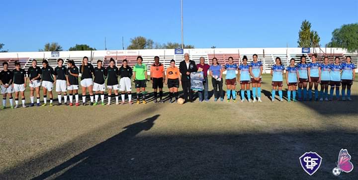 Cordiglia estuvo presente en el inicio del encuentro entre El Lechuzo y San Martin en la 3er fecha del torneo femenino de la liga sanjuanina categoria Master A. Y, mientras lucía sus insignias, se fotografió con ambas parcialidades.