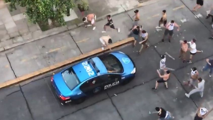 Un grupo de al menos 30 personas arremetió contra los patrulleros, que escaparon del lugar marcha atrás y que terminaron chocando entre sí. Algunos violentos arrojaron piedras y otros llegaron a enfrentarse cara a cara, pateando los automóviles de la fuerza y hasta golpeando a efectivos que estaban a pie.