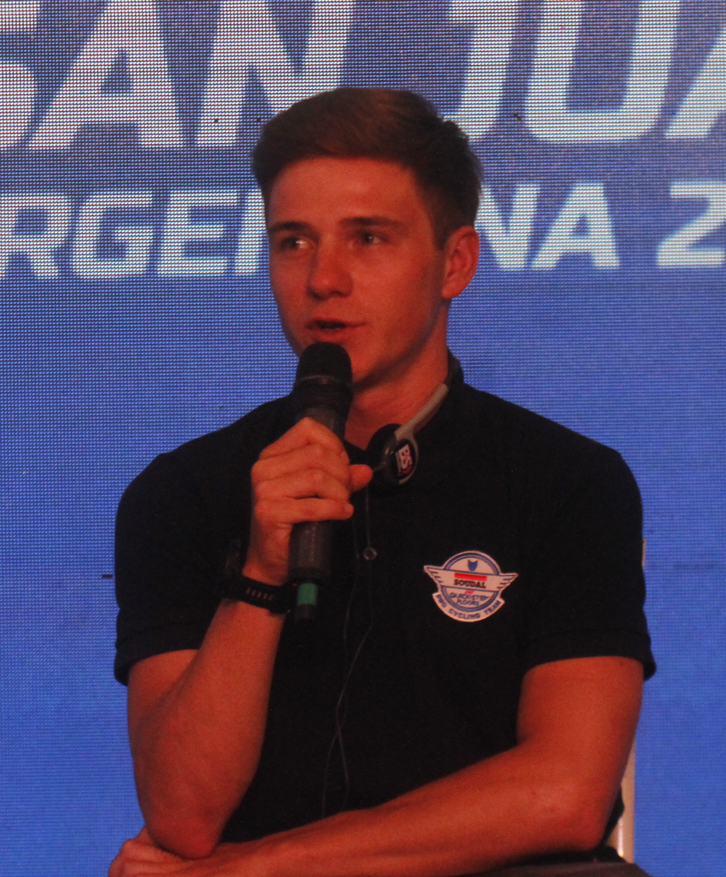 A las 17, los encargados de prensa de la Secretaría de Deportes iniciaron la entrega de credenciales a periodistas locales, nacionales y extranjeros que cubrirán la competencia. A las 18.00 puntualmente, ataviado con un jean y una remera azul marino con el logo de su equipo (Soudal Quick-Step) el campeón mundial Remco Evenepoel, contestó amablemente las preguntas a los periodistas. Lo mismo hizo, unos minutos más tarde (18.30) Egan Bernal. El colombiano, ganador del Tour de Francia 2019 y el Giro de Italia 2021, afrontó con similar simpatía las consultas que le realizaron.
