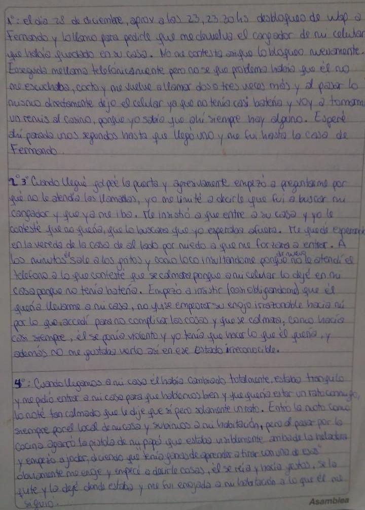 El texto fue escrito antes de que Nahir se entregara en la fiscalía, pero no fue presentado en el juicio. Sin embargo, se filtró a pocos días de que se realice la primera instancia revisora del fallo que la condenó, en la cual la defensa buscará reducirle la pena por considerar que el crimen fue el resultado de la violencia que la víctima ejercía sobre la joven de 20 años.
