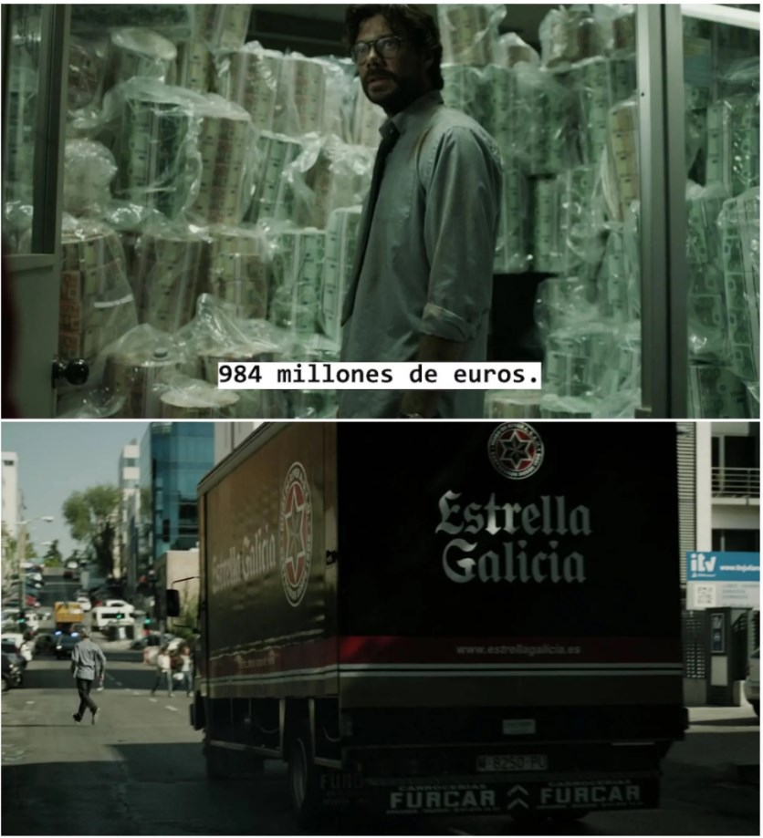 Por último, el camión de cerveza en el que transportan el dinero al huir de España no podría albergar ni a su máximo rendimiento los 984 millones de euros que roba la banda.