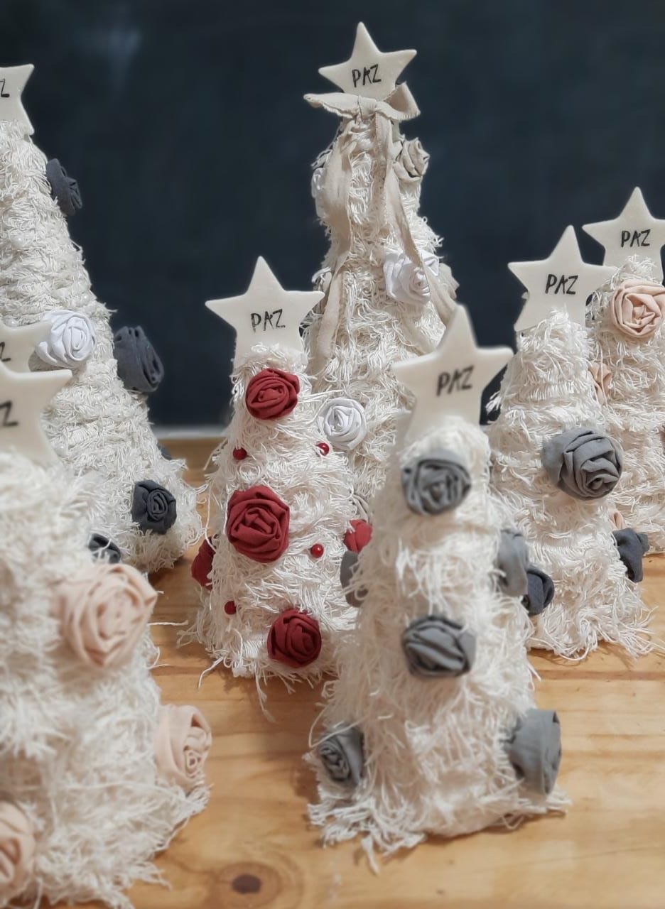 En un principio sus preferidas son las blancas a las que llamó Copo de Nieve, pero también las hace rojas, verdes o en el color que cada uno elija, según la decoración de su casa, tal como explica Valeria Ruiz, quien aprendió la artesanía de la mano de su mamá, con apenas 5 años. En 2014, se animó a lanzar su propio emprendimiento y su taller, muy cerca del Barrio Aramburu (en Paula Albarracín 1950 oeste, Rivadavia).