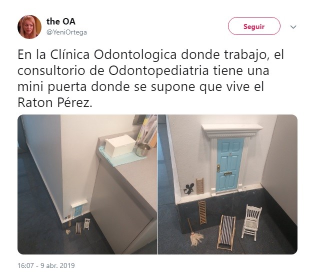 “En la Clínica Odontologica donde trabajo, el consultorio de Odontopediatria tiene una mini puerta donde se supone que vive el Raton Pérez", escribió la usuaria @YeniOrtega.
