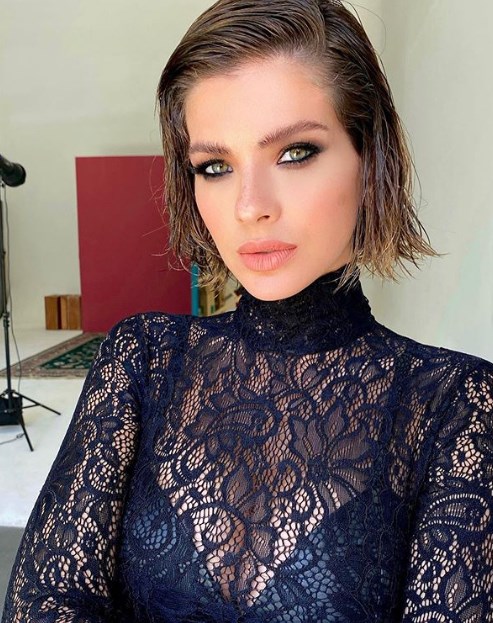 Para adelantar en las redes un poco de la nueva campaña , compartió un posteo en donde posa como modelo súper sexy. En las fotos está con una prenda de encaje negra, con cuello y mangas largas, que permite ver su ropa interior al tono.