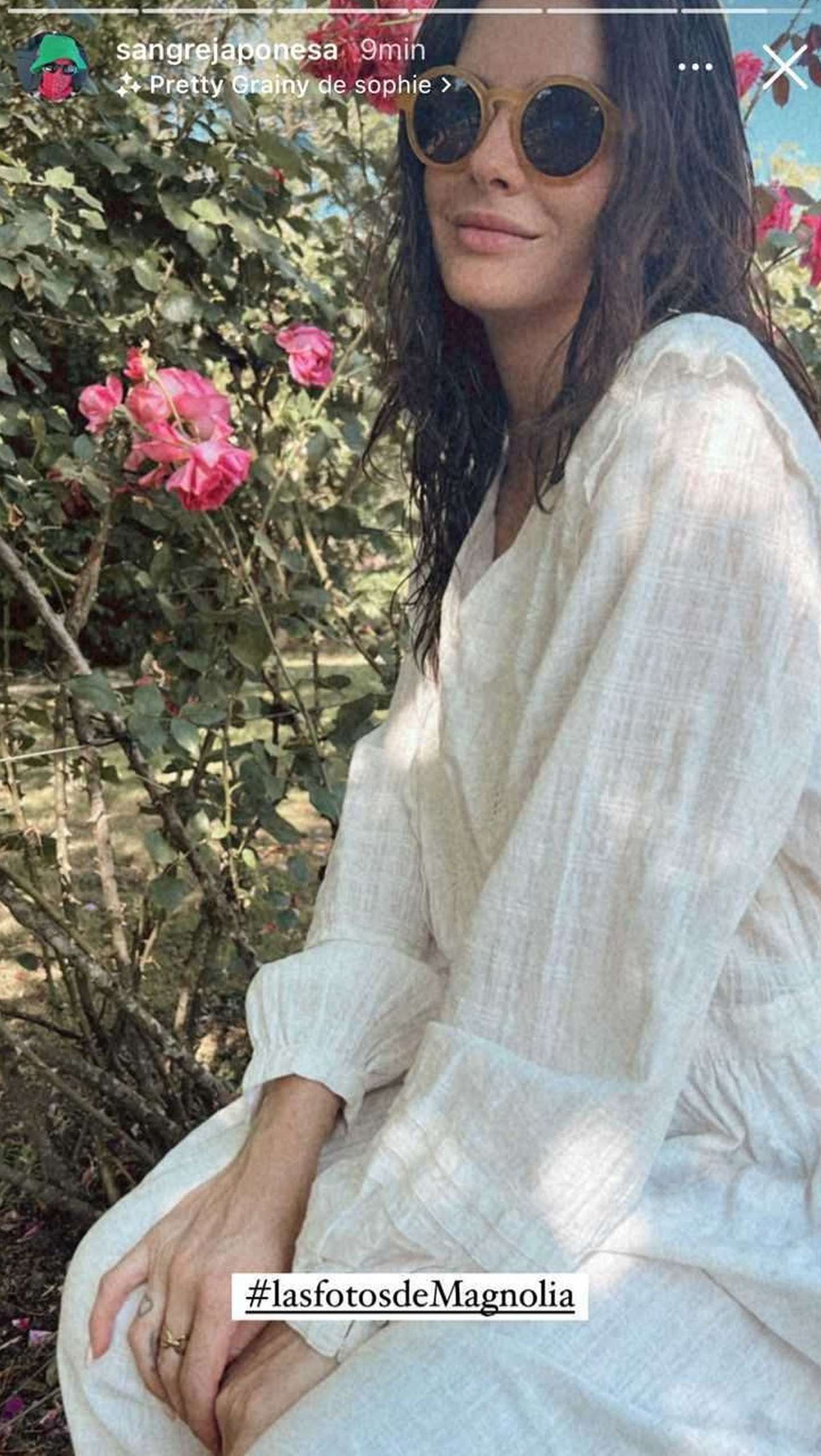 Recién bañada, la actriz le dijo a su hija Magnolia que la retratara en el jardín de su casa. La postal primaveral incluyó unas hermosas flores rosas de fondo, justamente del color de la indumentaria deportiva que le exigió al deportista. ¿Se trató de un palito para él?