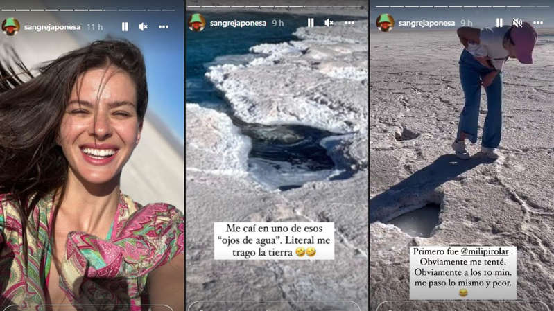 En otro posteo, publicó un clip y puso: "Primero fue Mili Pirola Reyley. Obviamente me tenté. Obviamente a los diez minutos me pasó lo mismo y peor", sintetizó la China su caída en Salinas Grandes.