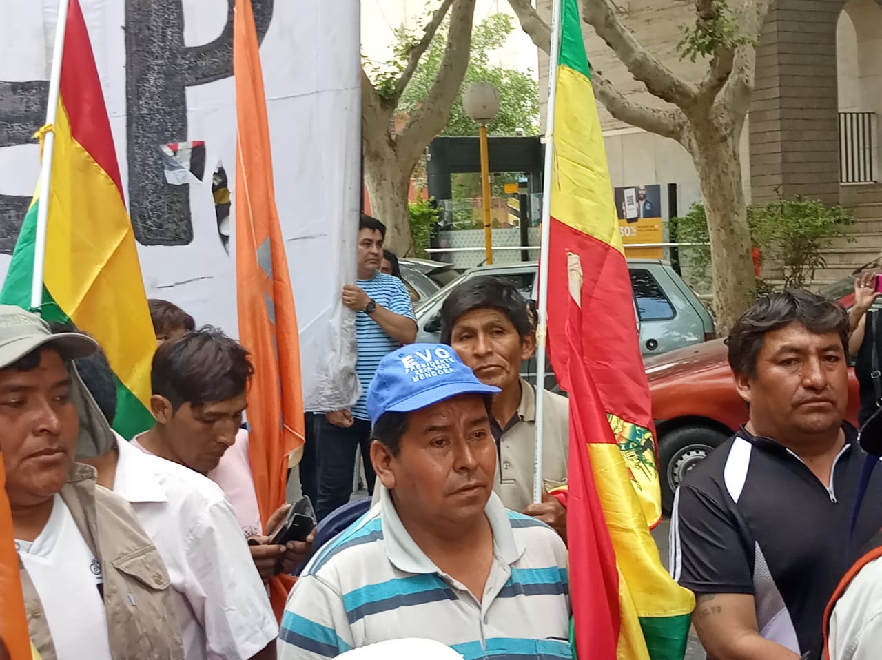 "Evo querido, el pueblo está contigo", se escuchó continuamente en los altavoces que acompañaban la marcha, encabezada por la comunidad boliviana radicada en San Juan. Una importante cantidad de personas se sumaron al repudio del "golpe de Estado fascista e imperialista" y manifestaron su apoyo a Evo Morales.