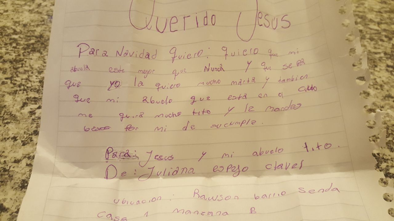 “Quiero que mi abuela esté mejor que nunca”, ese  fue el mensaje de Juliana  Espejo para Papá Noel esta Navidad.
