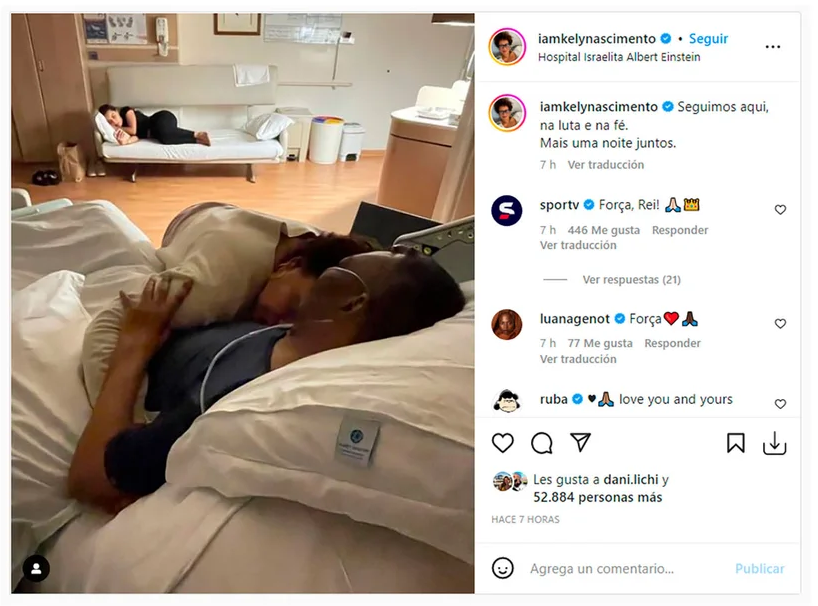 Pelé continúa internado en un hospital de San Pablo producto de un cáncer metastásico luego que su salud se haya deteriorado durante los últimos días. Los familiares acompañan al mito futbolístico en el lugar, mientras el mundo entero sigue de cerca su estado con preocupación. Día a día se espera por el parte de los médicos que cuidan del ex goleador de 82 años y en este caso fue su hija, Kely Nascimento, la que compartió una foto con él para transmitir el momento que viven.