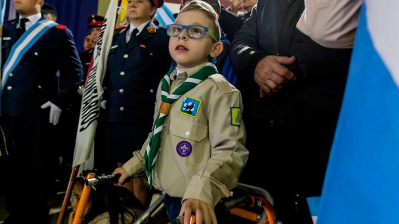 Ignacio Maujo tiene 8 años, es scout y va a segundo grado del colegio San José de Bell Ville, Córdoba. Su historia de superación se conoció en los últimos días: pese a una parálisis cerebral, logró dar sus primeros pasos, una hazaña que despertó la celebración de sus compañeros de curso.