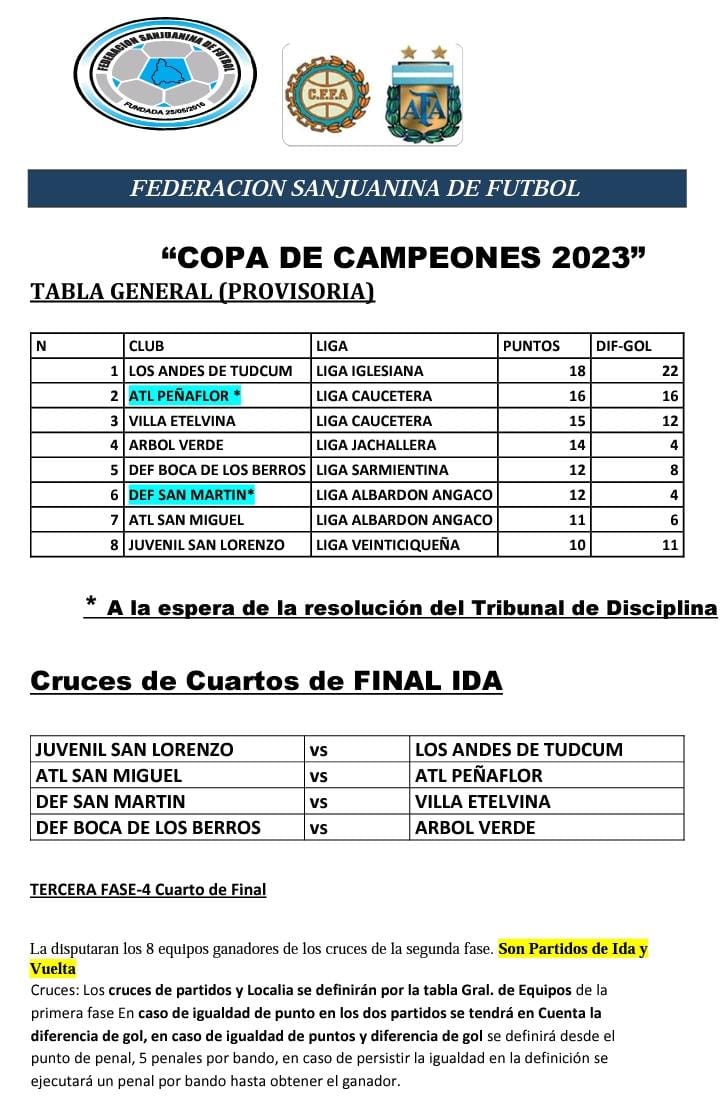 De esta manera, los clasificados a cuartos de final son: Defensores de Boca, Los Andes, San Lorenzo de 25 de Mayo, Árbol Verde, Villa Etelvina, San Miguel, Peñaflor y Defensores de San Martín.