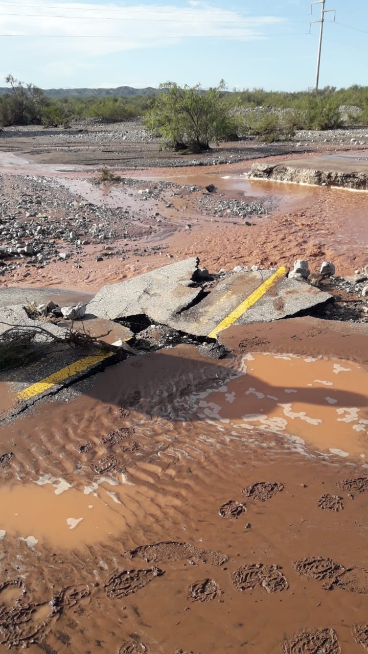 RN 40 Huaco-Límite con La Rioja tránsito con máxima precaución. Badenes con arrastre.