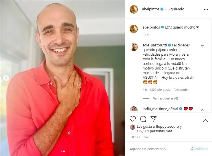 Mientras que sus fanáticos también se mostraron emocionados con la llegada del bebé y comentaron expresiones como: "Qué más que desearte toda la felicidad del mundo, soy feliz de verte y sentirte así, mis bendiciones para vos Abel Pintos y para toda la FAMILIA te laviu fuerte NENE ❤ ESA CARITA NO TIENE PALABRAS".