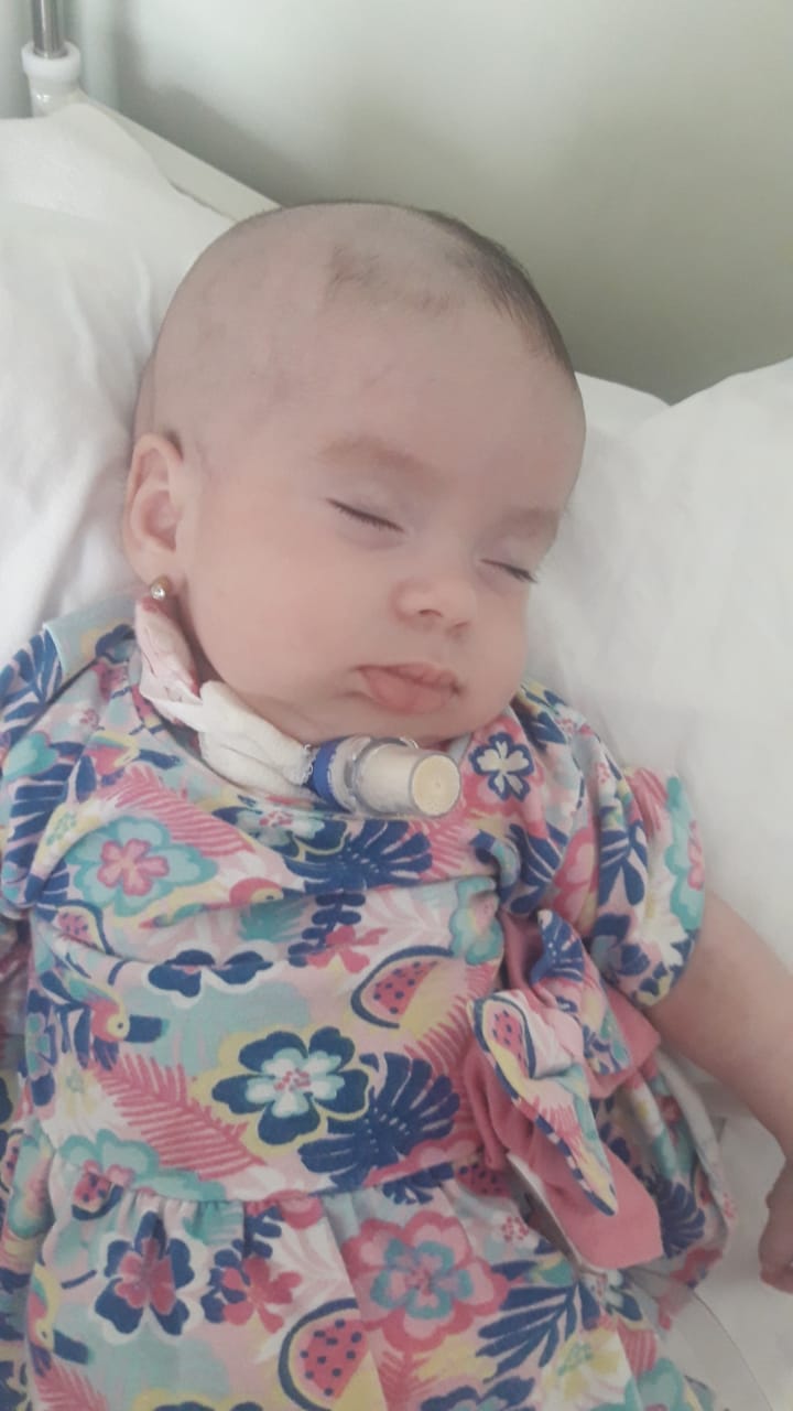 Aimara nació el 22 de noviembre sobre el mediodía y tras la cesárea inmediatamente fue trasladada a Neonatología. Al día siguiente confirmaron que la chiquita además de la hidrocefalia padecía también mielomeningocele. A la semana le dio una parálisis respiratoria y la beba tuvo que volver a ingresar a un quirófano para colocarle una traqueotomía. "El 2 de diciembre le colocaron la válvula para que despida todo el líquido. Padece convulsiones y está medicada de por vida, además como no puede despedir la orina, le tenemos que colocar una sonda para que pueda hacer pis", comenta la mamá, de 18 años.