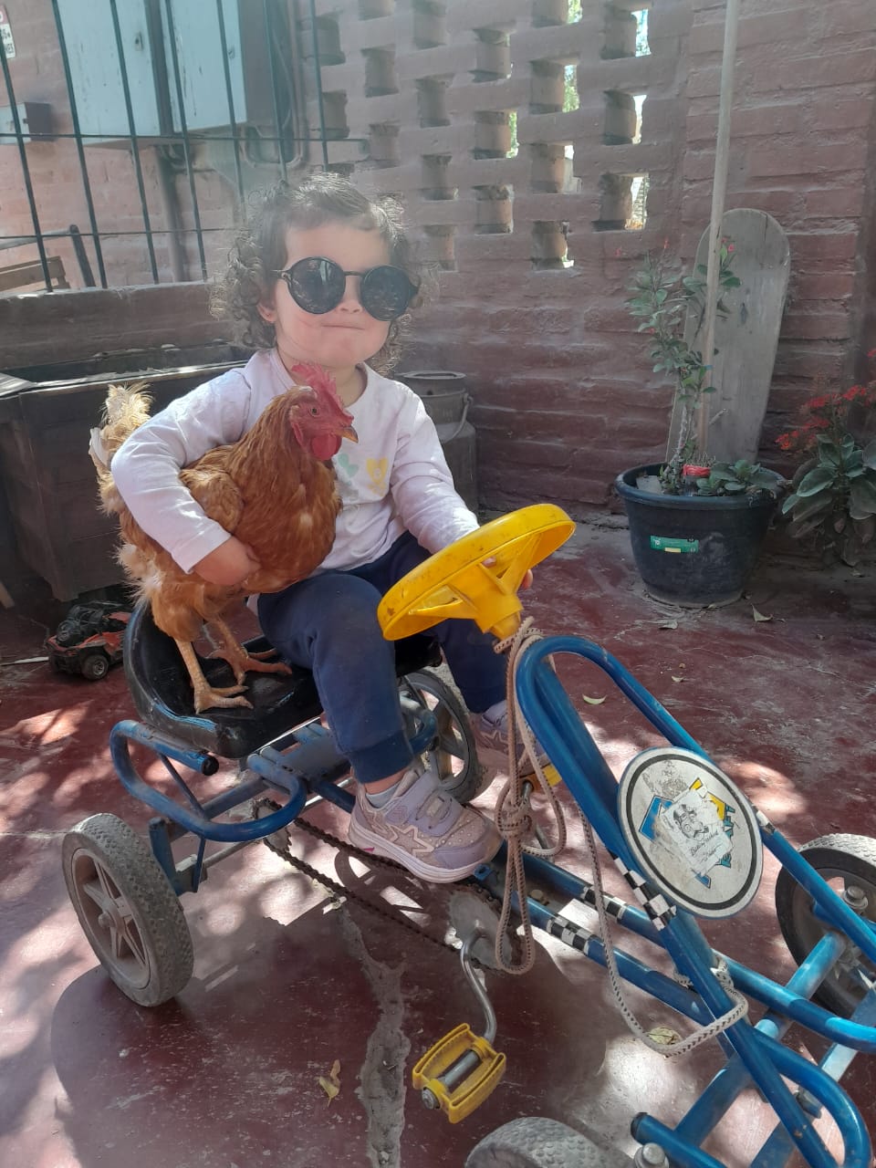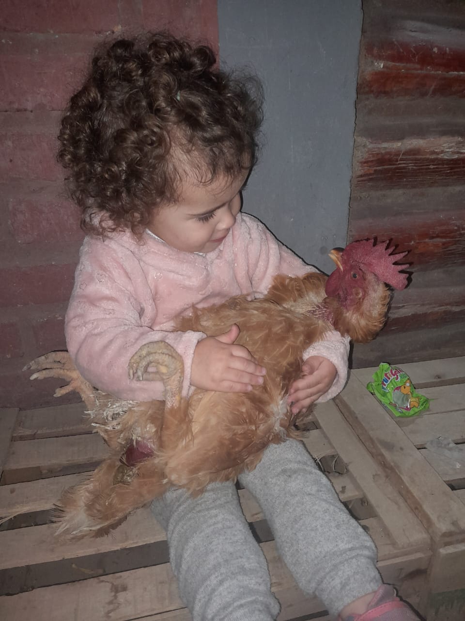 Martina, que por ese entonces comenzaba a caminar, fue quien entabló el vínculo más especial con la gallina. "Son inseparables. En ese momento la gallina la seguía, se le subía encima, Marti la alza y la gallina se le duerme en los brazos", contó el papá de la pequeña. Tanto es el cariño que le agarró la familia que estuvo durante varios meses durmiendo en la cama, hasta que ella misma decidió dormir en un patio pero lejos de dormir en un gallinero, lo hace en una maceta.