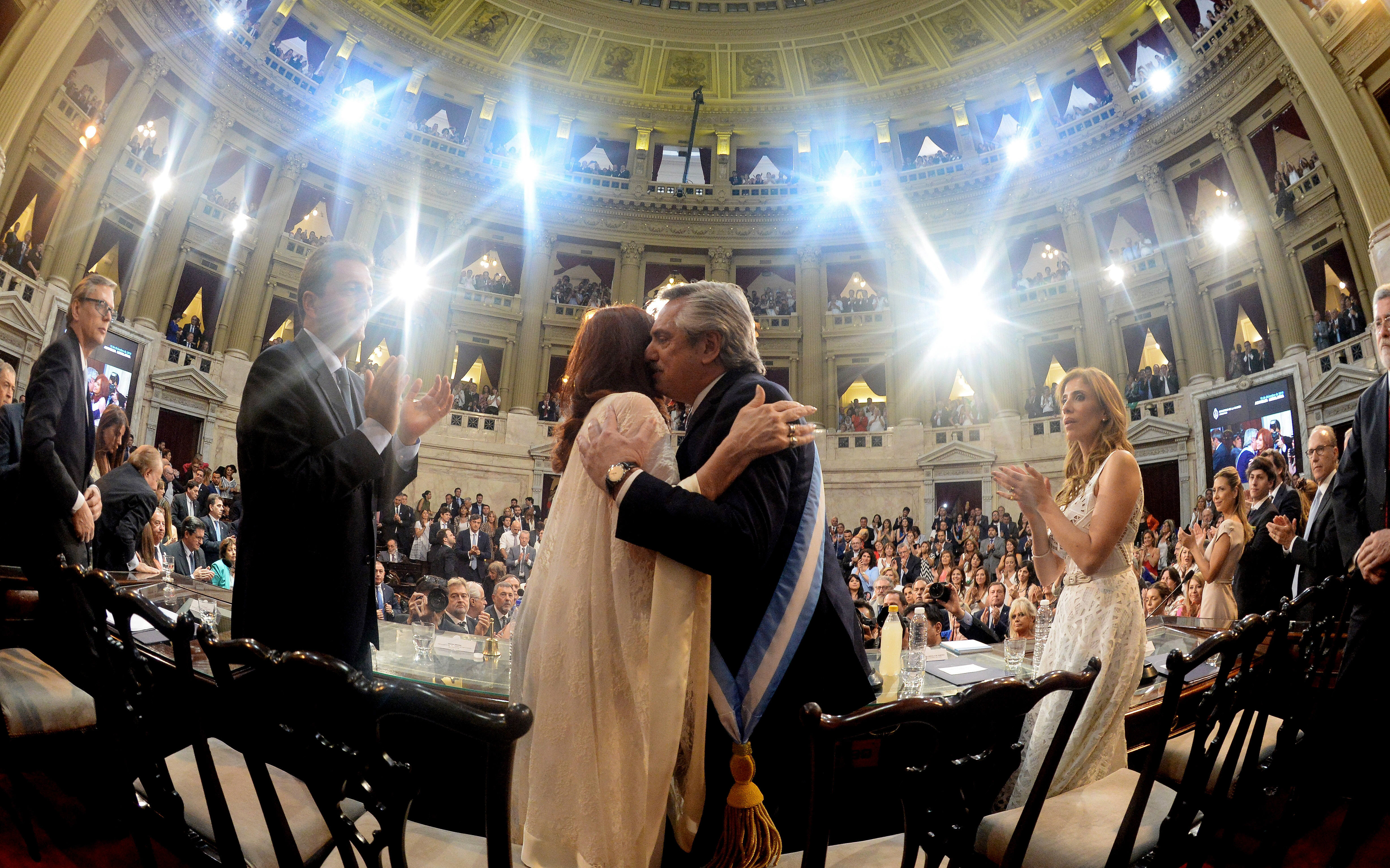 Un emblemático abrazo. El flamante presidente, Alberto Fernández, y su mentora, Cristina Kirchner, protagonizaron un momento emocionante tras la jura y asunción de ambos: un abrazo interminable que sella el nuevo poder en Argentina hasta 2023.