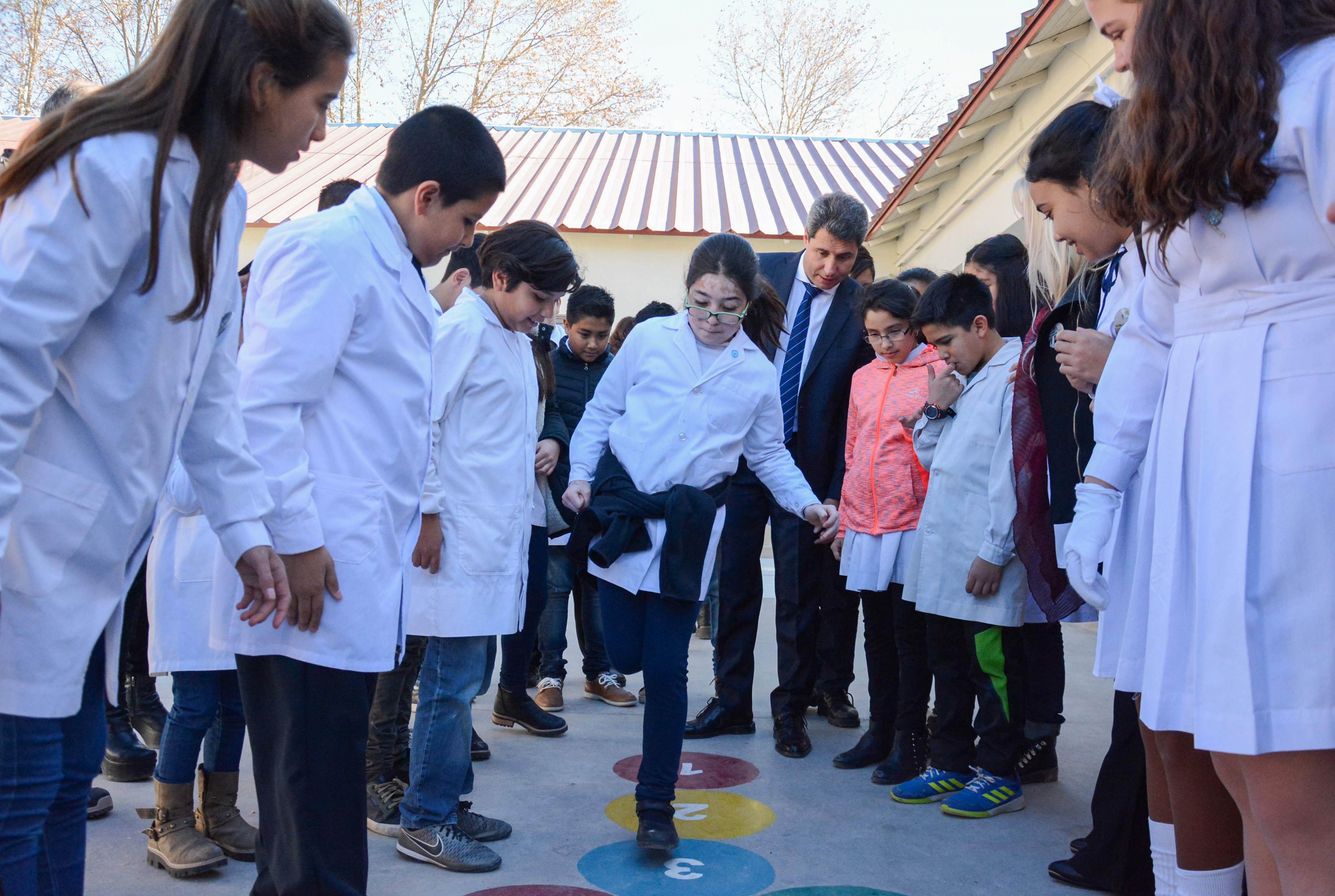 Alegría. Los alumnos de la escuela Pedro Nolasco Fonseca disfrutaron de las mejoras en el edificio junto al gobernador Sergio Uñac.