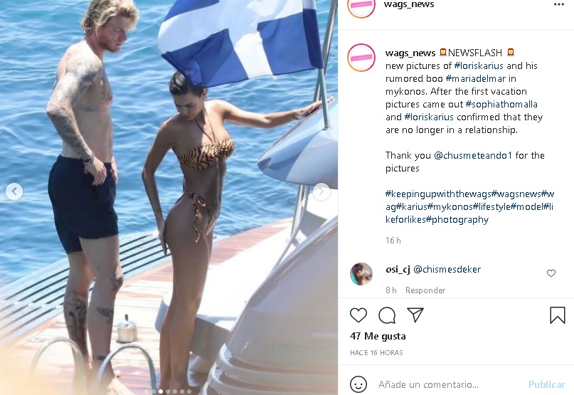 La modelo María del Mar Cuello Molar, exesposa de Matías Alé, quedó envuelta en un escándalo internacional luego de ser fotografiada junto al exarquero del Liverpool Loris Karius en la isla griega de Mykonos.