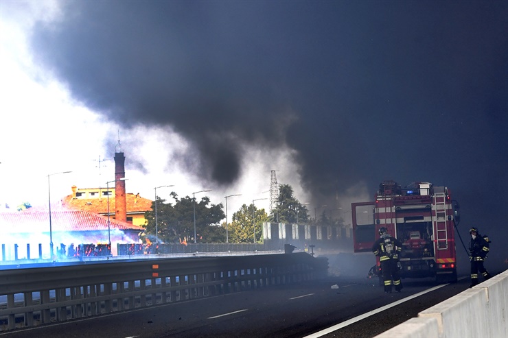 De acuerdo con las primeras versiones, el incendio provocó explosiones en cadena: primero estalló el camión y luego se incendiaron varios concesionarios de automóviles que se encuentran entre Via Emilia y Via Caduti di Amola.
