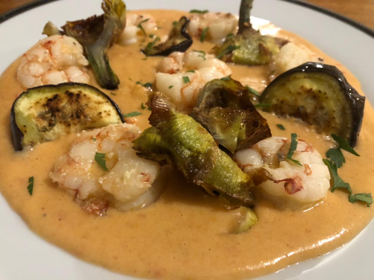 Respetando el paso a paso tradicional, explica que lleva miga de pan machacada o molida en mortero, a la que se le agrega ajo, aceite de oliva, puré de tomates. El resultado es una crema o salsa espesa que suele servirse con jamón crudo, salame o huevos duros en su superficie. Es una receta que lo tienta, tanto que suele hacerlo combinando la fórmula española con langostinos más berenjenas y zapallitos verdes sofritos.