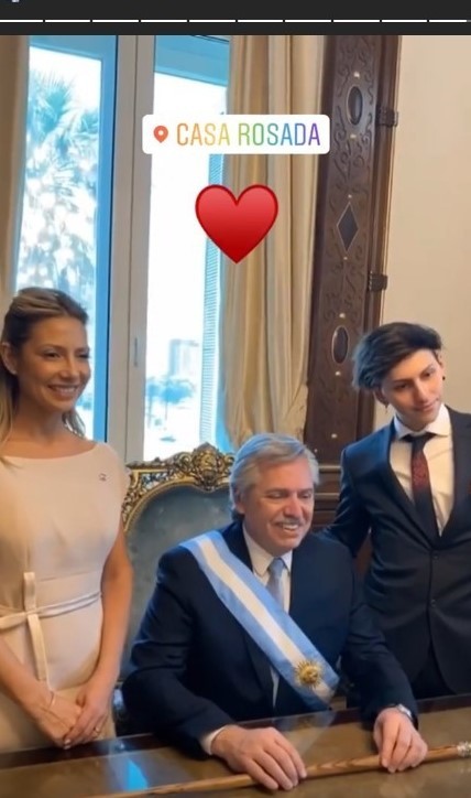 A su derecha está su pareja, Fabiola Yáñez, y a su izquierda su hijo Estanislao Fernández.