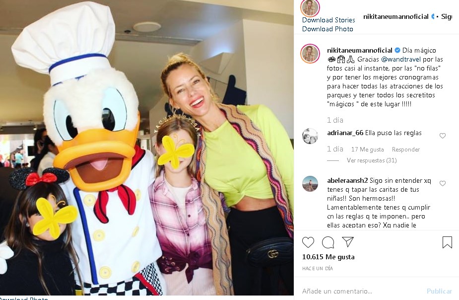 Si bien Nicole viene realizando esta práctica desde hace un tiempo, un posteo donde se la ve a dos de sus hijas junto al Pato Donald, desató el enojo de muchos de sus seguidores.