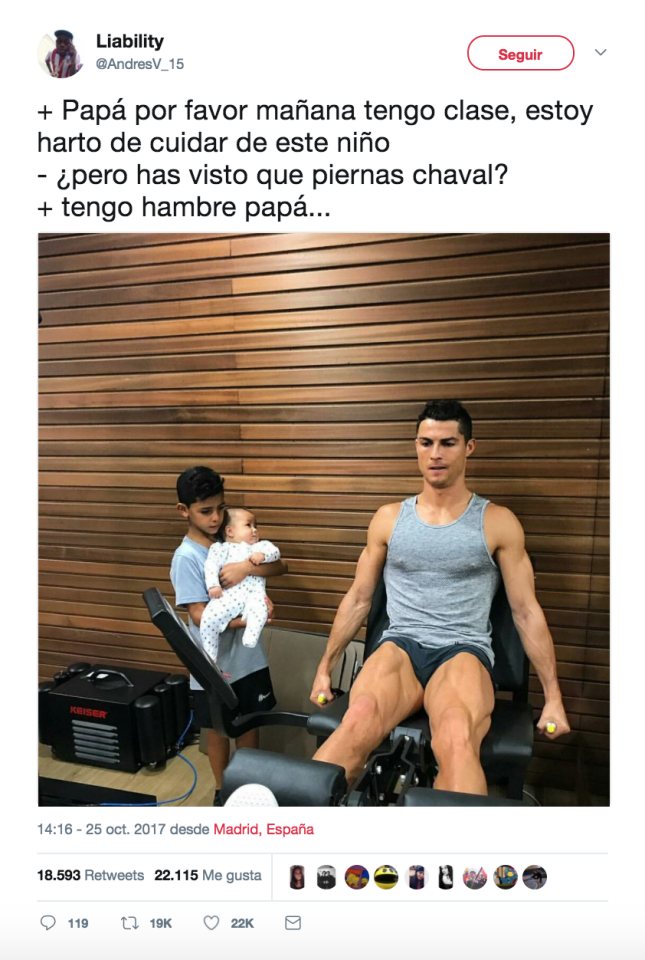 En la fotografía el primogénito de Ronaldo ejerce con ternura su rol de hermano mayor, cargando al bebé Mateo en sus brazos, mostrándole cómo su padre entrena intensamente.