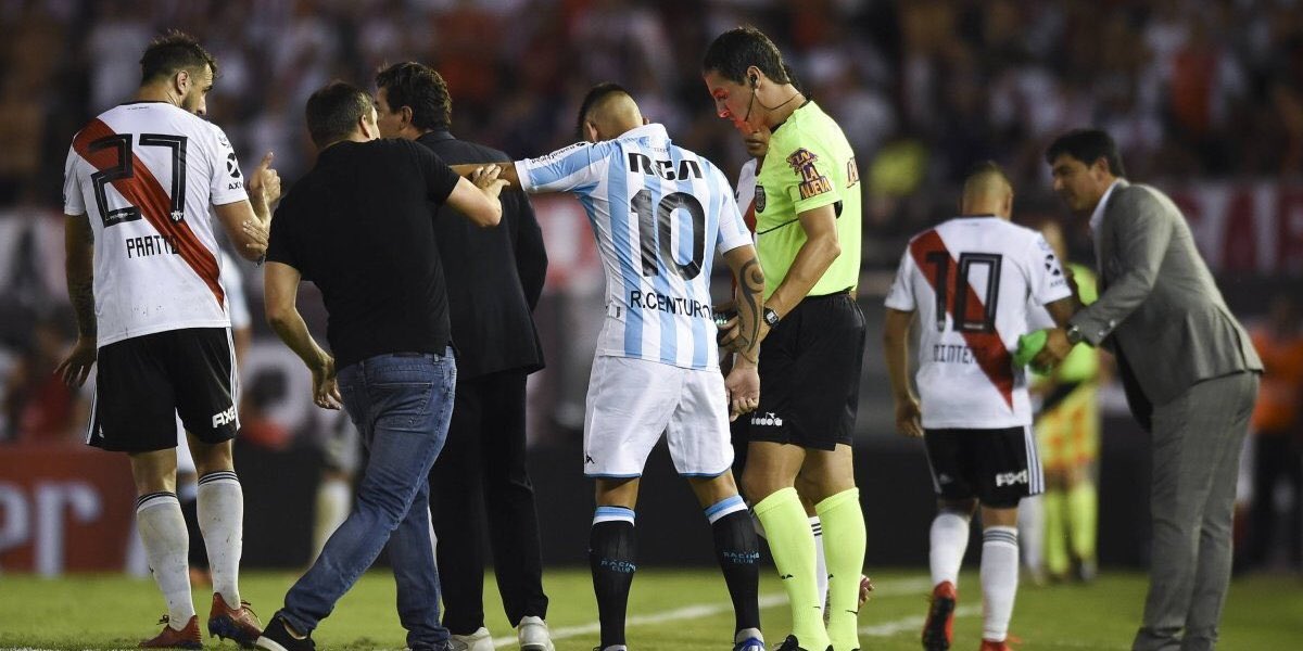 En las imágenes, incluso, se lo ve a Coudet dudando si hacerlo ingresar o no luego del cortocircuito. Finalmente, Centurión reemplazó a Renzo Saravia. Fue hostigado por el público de River, que lo silbó en cada intervención y le cantó "pisala ahora, la p… que te parió". Además, sobre el final del juego, padeció un lujo por parte de Milton Casco que hizo delirar al público millonario.