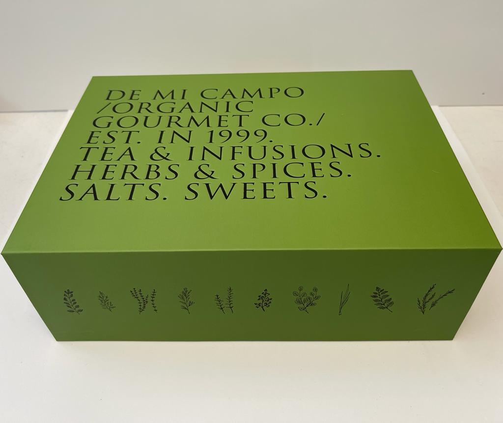 En De Mi Campo se esmeran por tener lo mejor de ambos mundos, un producto genuino y natural, con los más altos estándares de calidad, y lo acercan al público en una presentación de primer nivel. Su objetivo es el conocimiento y artesanía para llegar a la sofisticación; partiendo de las raíces sanjuaninas para alcanzar la vanguardia. Las líneas de hierbas y especias e infusiones, además, han sido certificadas como orgánicas por la Organización Internacional Agropecuaria, empresa líder en certificación de productos agropecuarios, procesados e industrializados. Esto asegura y avala las buenas prácticas, para continuar trabajando en armonía con el entorno y el cuidado del medio ambiente. Por ello los productos no tienen conservantes ni agregados artificiales. Aquí presentamos el fruto de la tierra de la finca De Mi Campo.