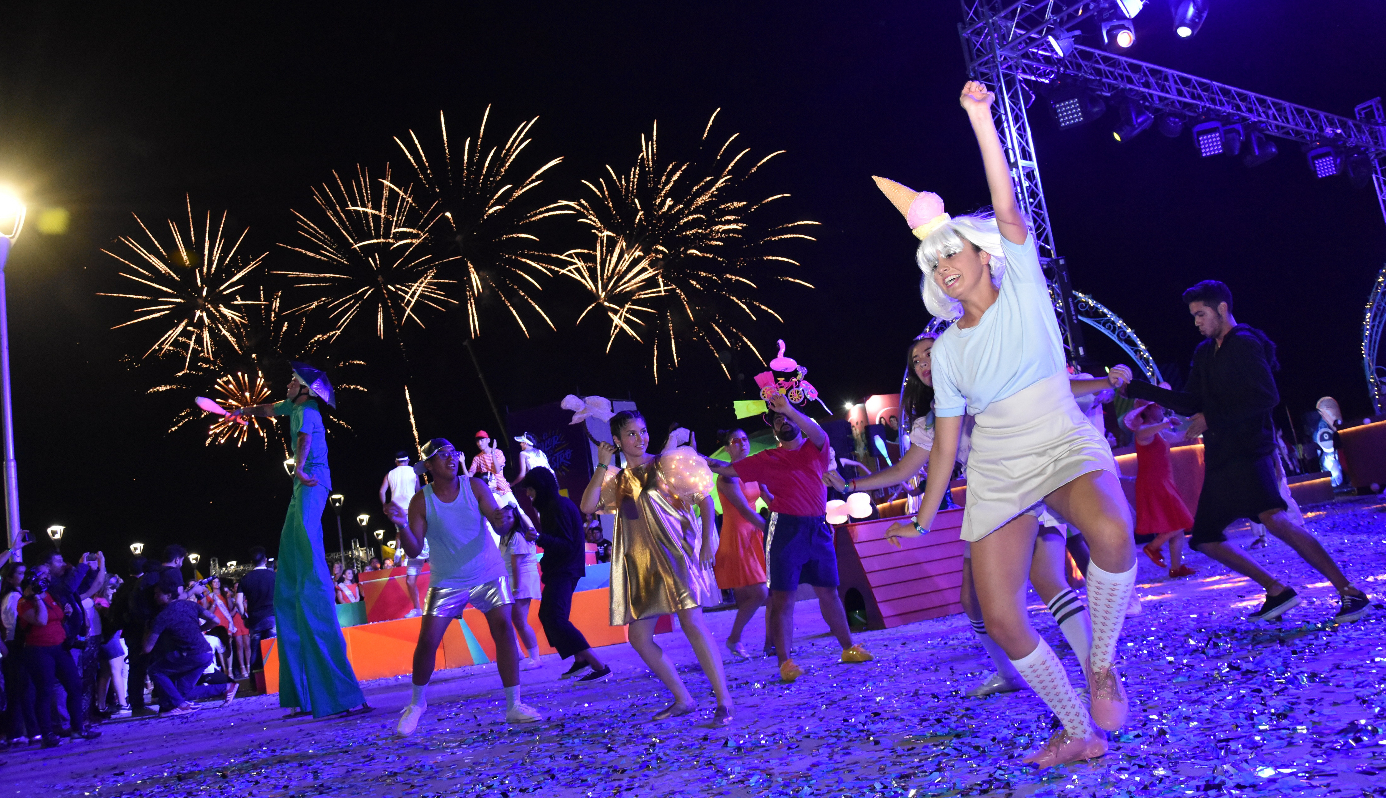Después del acto protocolar todo fue fiesta. Luces de colores, música electrónica que sonó en vivo y más de 90 bailarines locales dieron la bienvenida a la gente que llegó pasadas las 21.