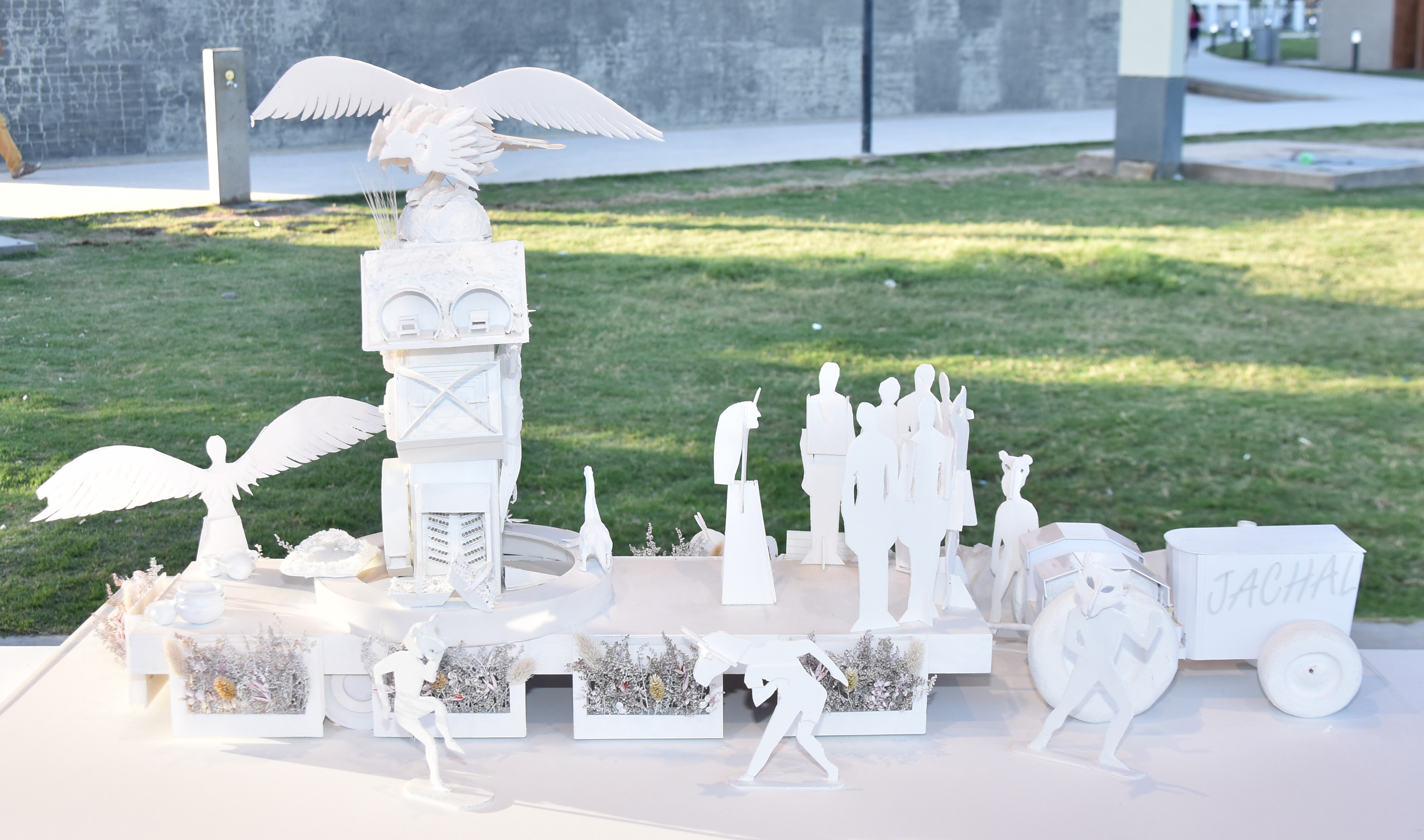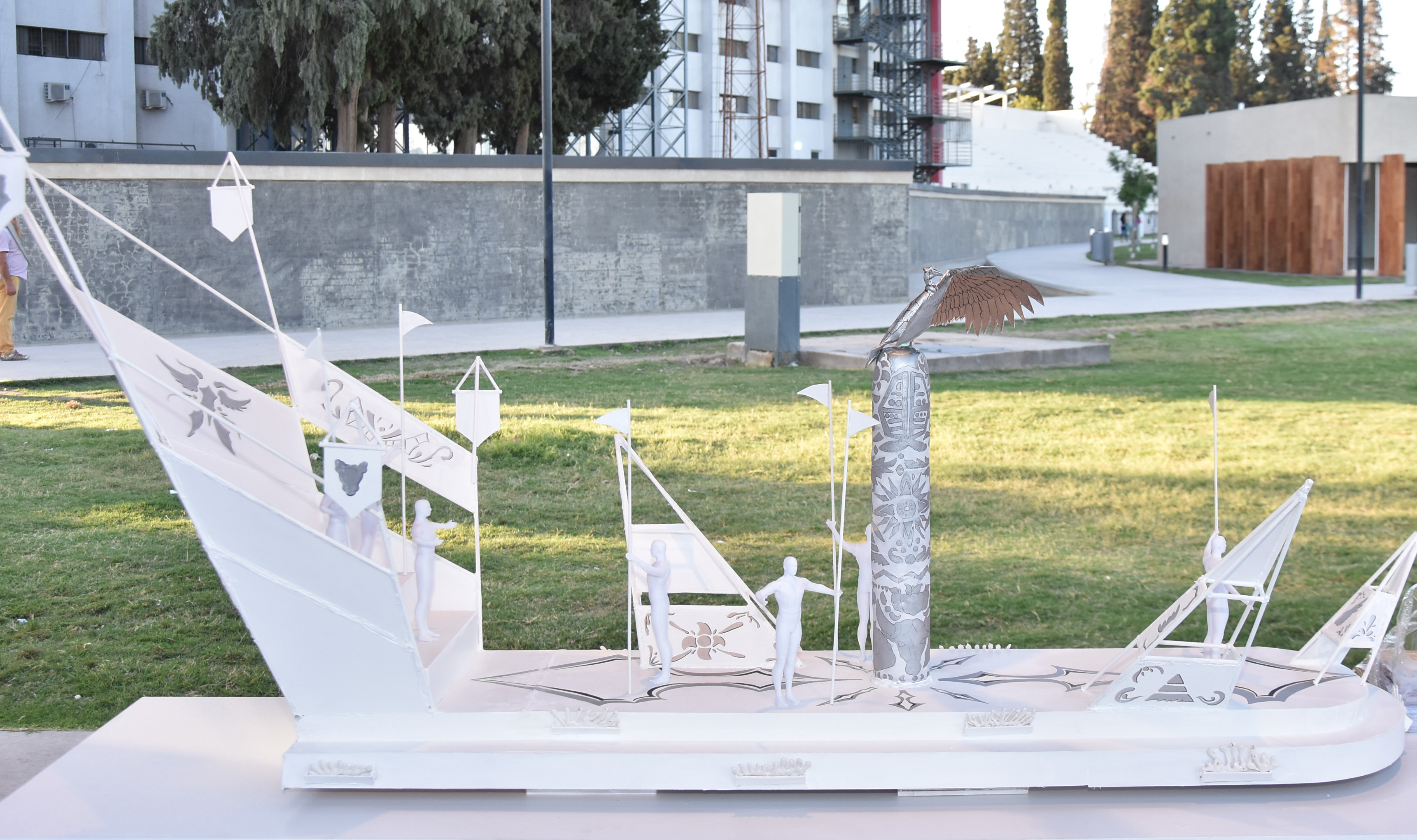 En la muestra se pudo observar que todos los carruajes tendrán tres elementos iguales: un totem sobre el que representarán los hitos de fundación, evolución y revolución; una rosa de los vientos para representar el territorio y sus puntos cardinales; y un coro que relatará, a través de expresión teatral, ritual y rítmica, la historia del pueblo.