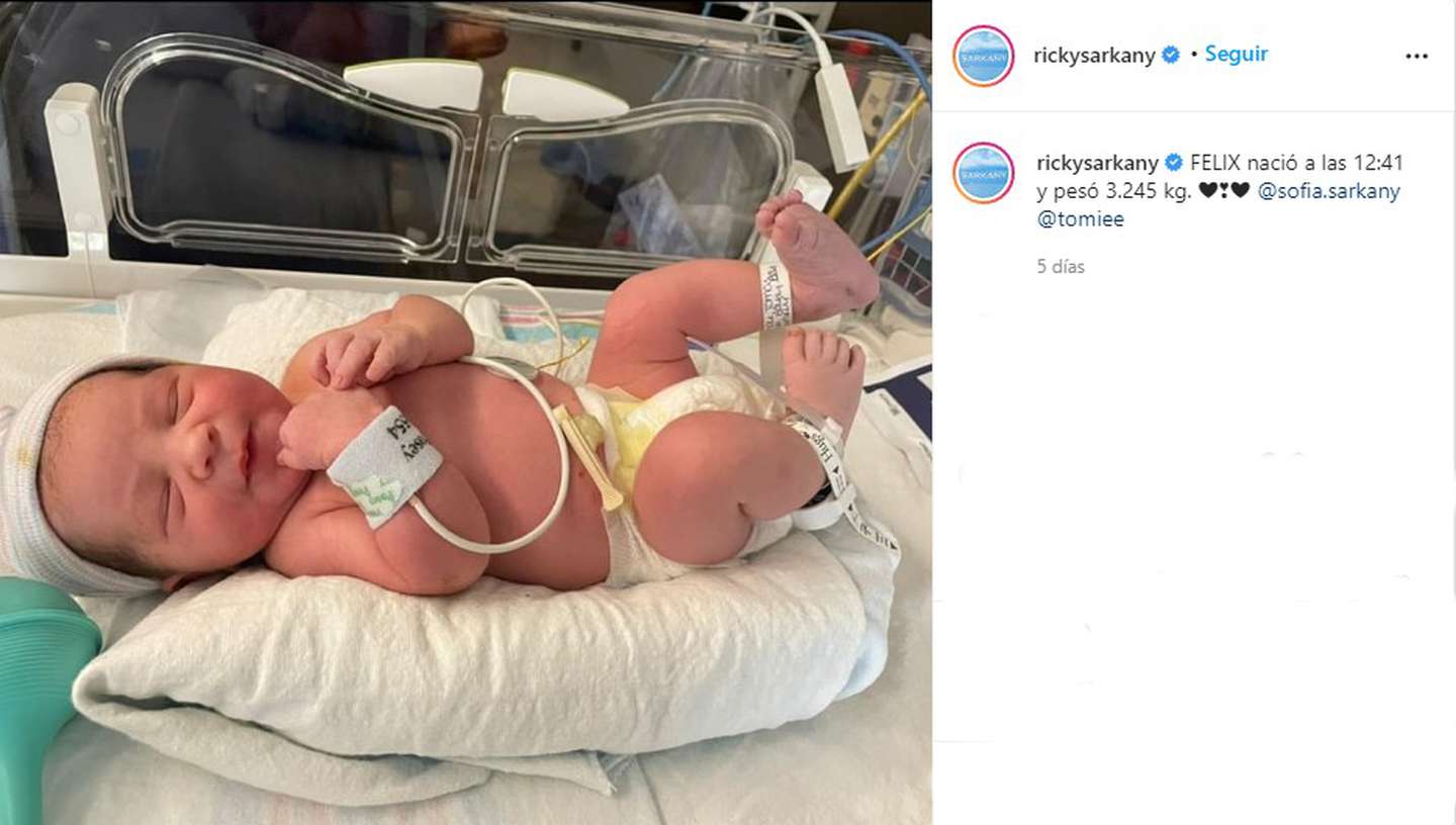 Por su parte Ricky Sarkany, que con la llegada del nuevo integrante de la familia se convirtió en abuelo por segunda vez, eligió la misma red social para darle la bienvenida. Allí, además de compartir una foto del bebé, agregó la hora de nacimiento y el peso.