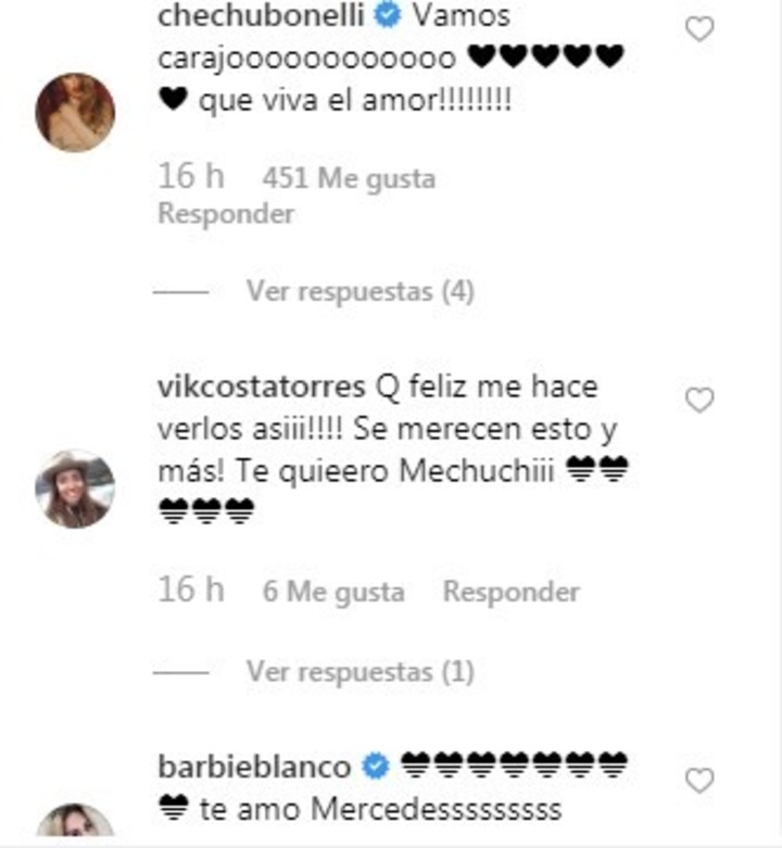 La modelo y periodista, Cecilia Bonelli, que además está en pareja con Darío Cvitanich, comentó su publicación en Instagram: "Que viva el amor", sostuvo. Y rodeó la frase de muchos corazones.