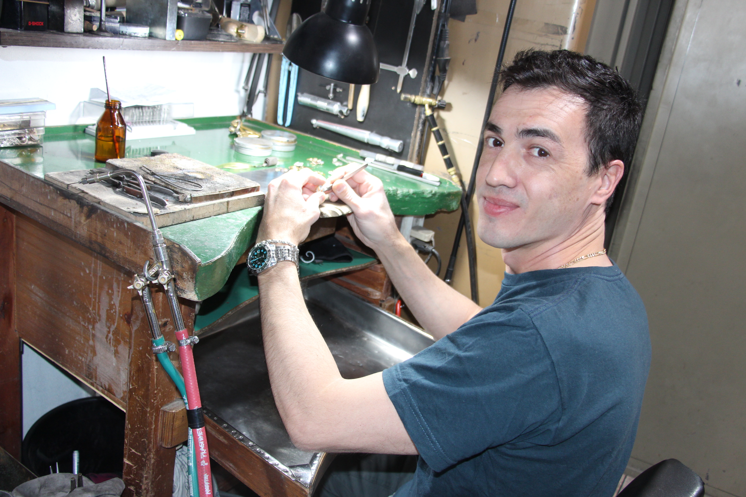 En el taller pueden hacer desde el cambio de pila de un reloj a crear una joya única. La única etapa del proceso que no realizan ahí dentro es el pulido de una piedra preciosa. Después, sea diseño o compostura, cualquier cosa. Aunque pasan mucho tiempo los cuatro juntos, cada uno ‘está en su mundo’, absorbido por el desafío que tiene enfrente, y lo común es que el único sonido que se produzca ahí sea el de las herramientas.