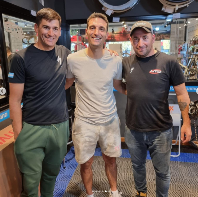 "Es una locura todo, pasó tan rápido que por ahí cuesta un poco caer", comenta emocionado Lito. ¿Cómo surgió esa relación? Lito es propietario de la bicicletería "Lito Oviedo Bikes", en esa ciudad cordobesa y conociendo que Scaloni era amante de las bicis un día le envió un regalo al entrenador: un conjunto de indumentaria para entrenar. Lo que nunca imaginó es que iba a ser el mismísimo DT quien a la semana siguiente iba a responderle por Instagram agradeciéndole por el gesto. "No podía creer cuando vi que era él. Me escribió diciéndome que estaba muy agradecido y que aprovechando que yo tenía bicicletería si lo podía asesorar sobre un repuesto para su bici, yo encantando de asesorar al técnico que nos hizo salir campeones del mundo, imaginate", expresa Oviedo.