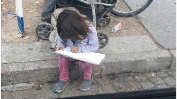 La conmovedora foto de una niña que hace los deberes sentada en el cordón de la vereda, en una calle de San Miguel de Tucumán, tiene una historia detrás hasta hoy desconocida.