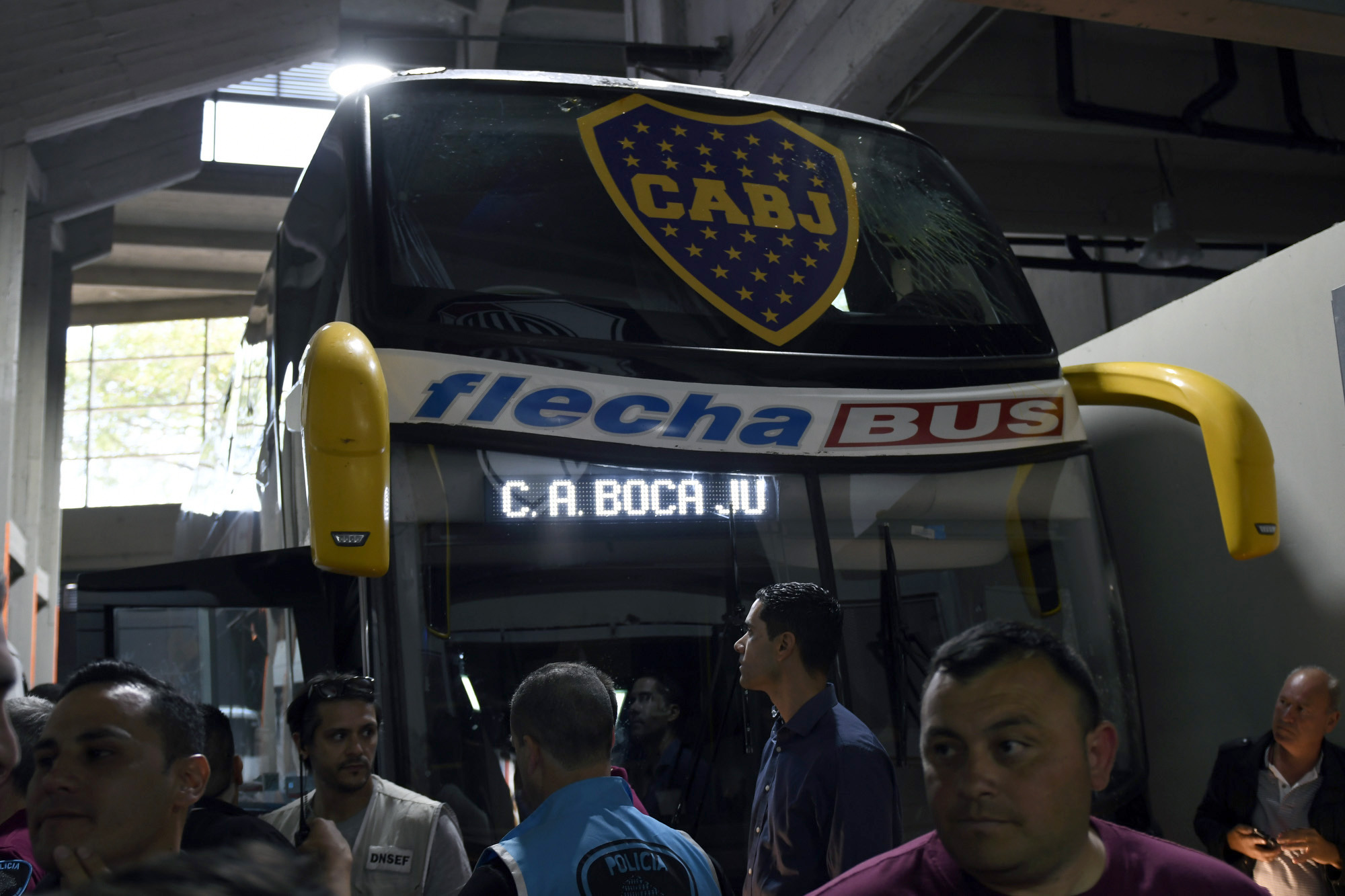 Adoquines, botellas de cerveza y gas pimienta, el armamento que un grupo de barras les arrojó a los futbolistas de Boca. Los energúmenos dañaron vidrios y el estallido lastimó el brazo izquierdo de Pablo Pérez. Y por los huecos de las ventanillas penetraron los gases lacrimógenos de la Policía, que intentó controlar una situación que se le escapó de las manos. ¿Por qué el vehículo ingresó por la calle Lidoro Quintero, donde estaba un grupo nutrido de hinchas? ¿Sólo hubo negligencia o zona liberada? ¿Fue una revancha de Los Borrachos del Tablón por los allanamientos del viernes, cuando desactivaron sus operaciones de reventa? En River sospechan de Caverna Godoy, uno de los líderes de la barra brava y a esta teoría apuntan en las líneas de investigación. D’Onofrio aseguró: “Son 15 vándalos los que armaron esto. ¿No los conocen? Saquémoslos del fútbol”. Hubo apenas 16 detenidos por atentado y resistencia a la autoridad y 40 demorados por incitación a la violencia.