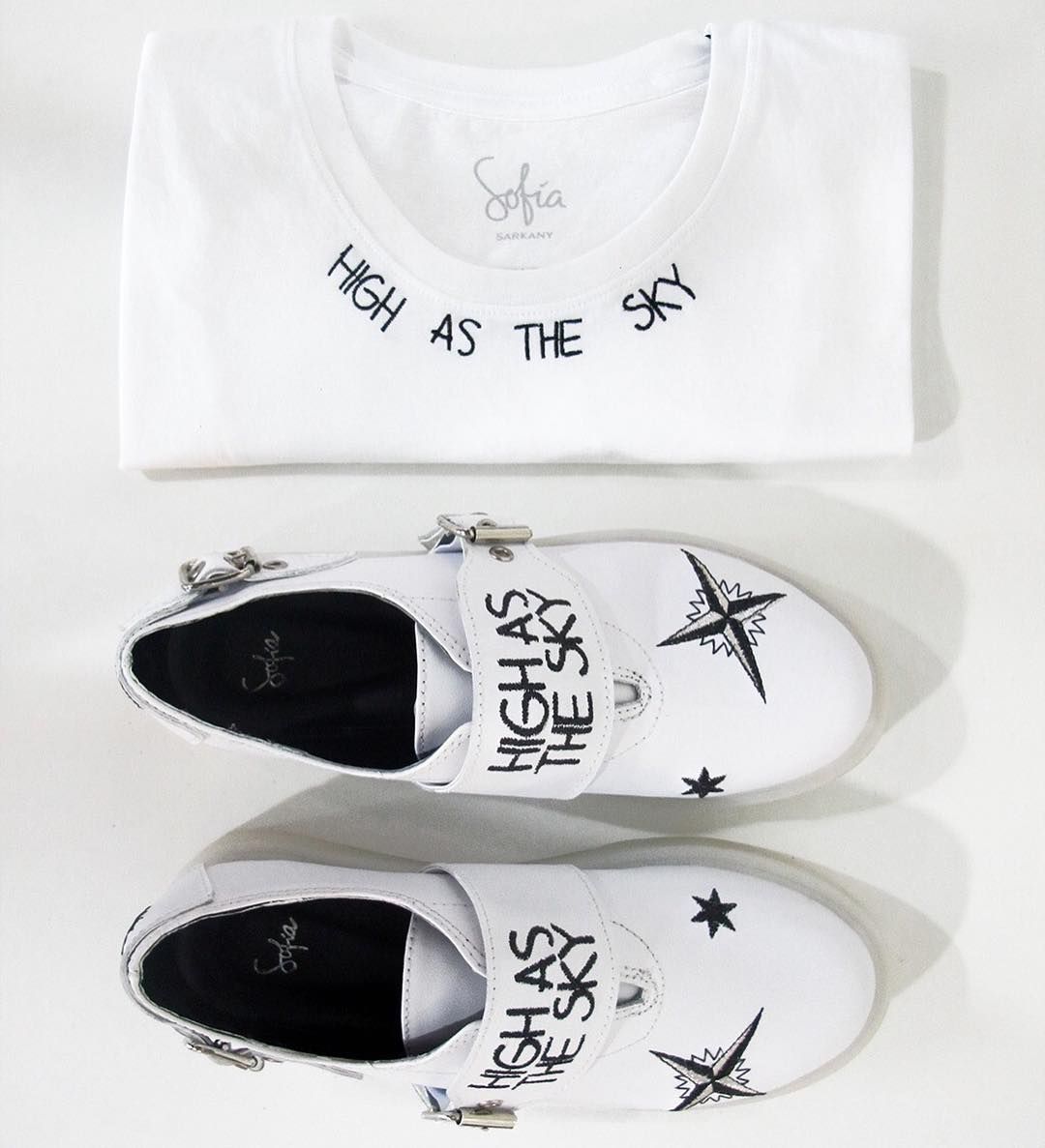 Sofía empezó a trabajar en la firma Sarkany y fue allí cuando surgió la idea de unir sus dos pasiones: zapatos y arte. En busca de armar una propuesta con identidad propia, la joven a sus 22 años creó una línea inspirada en sus cuadros y en sus estudios de arte. Así fue como, en medio de una muestra con obras de su autoría, la artista lanzó "Sofía para Sarkany’. Tonos neón, maxi plataformas, manchas de colores realizadas artesanalmente en gabardinas, rasos, cueros, telas estampadas y gamuzones son algunas de las tantas propuestas que se pueden ver en la línea de la firma.