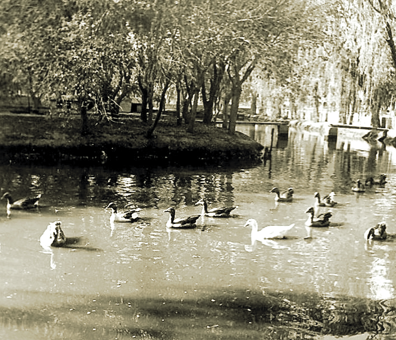 La foto tomada en el año 1948 por el fotógrafo José Mazuelos, nos muestra el lago, sus patos, el puente que lleva a la pista y la Isla en sí, que a plena luz del día era atractivo para niños y familias que no sabían de la noche y sus bailantas y menos de las disputas que allí ocurrían casi siempre, por una mujer, que no le gustaban los conscriptos, jóvenes de muy poca edad.