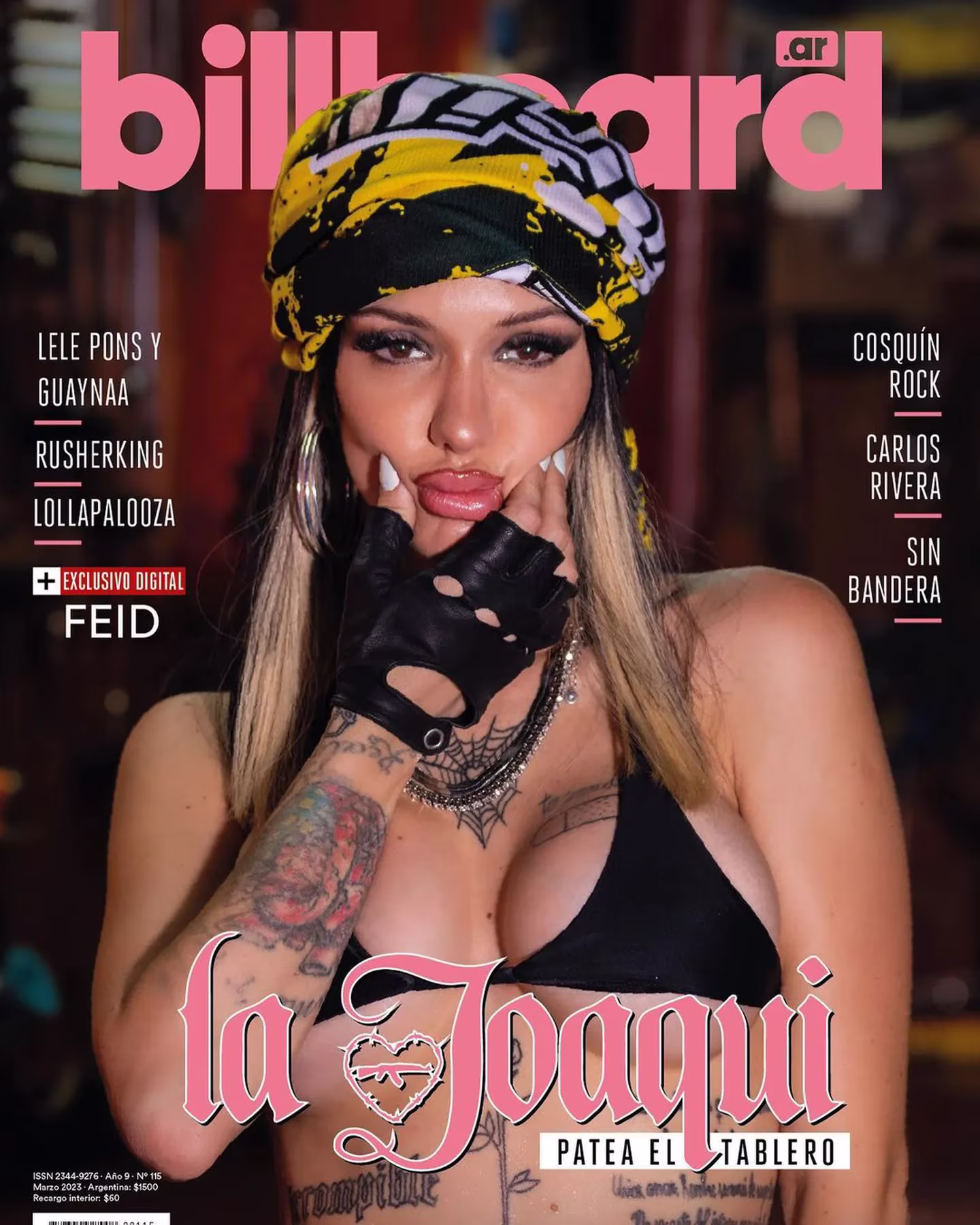 La popularidad en ascenso de La Joaqui -su tema Muñecas junto a Tini Stoessel suena en todos lados- se traduce en una inmensa influencia en las redes sociales. Además de ser una referente musical para las nuevas generaciones, la artista demuestra ser aficionada a la moda y las tendencias. Hace algunas semanas, posó para la portada de la revista Billboard y arrasó con su look: turbante, mitones y tanga a la vista.