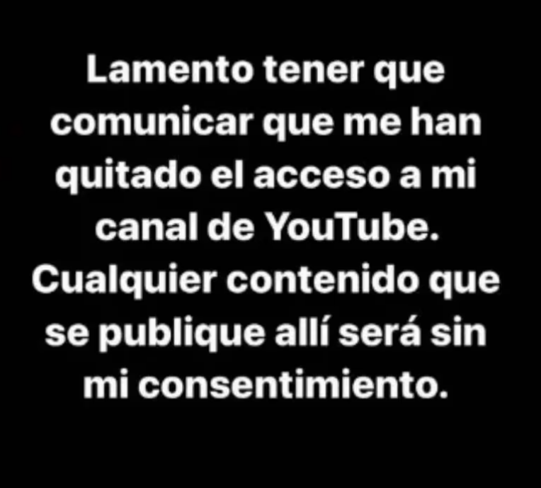 La Joaqui sorprendió a sus seguidores una vez más al realizar una denuncia en sus redes sociales. “Lamento tener que comunicar que me han quitado el acceso a mi canal de YouTube. Cualquier contendido que se publique allí será sin me consentimiento”, escribió la cantante en una historia de Instagram.
