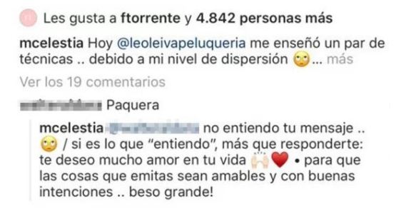 “No entiendo tu mensaje”, comenzó diciendo la ex protagonista de “Las Estrellas“. “Si es lo que ‘entiendo’, más que responderte: te deseo mucho amor en tu vida para que las cosas que emitas sean amables y con buenas intenciones… ¡Beso grande!”, cerró enfurecida.