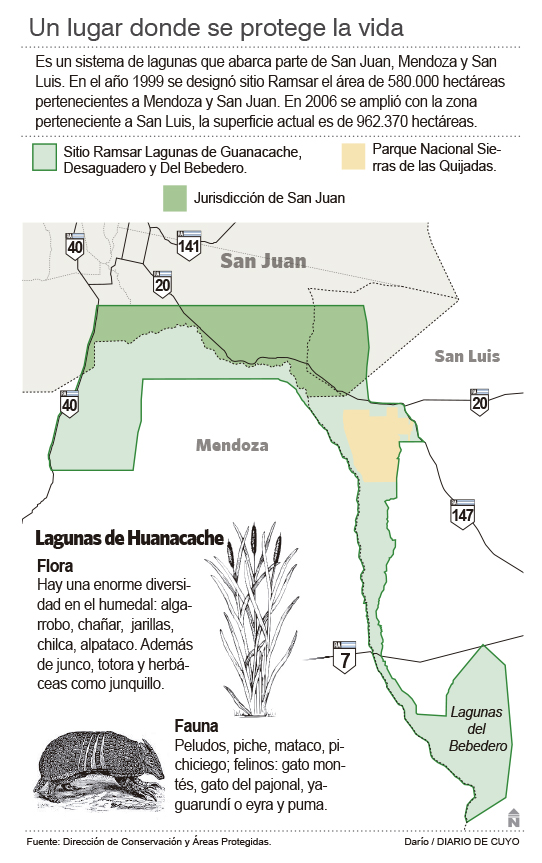 Estas zonas están identificadas como degradadas, es decir deforestadas. Como ejemplo basta decir que un algarrobo tarda 20 años en volver a crecer. Esto sumado que está asociado a la fauna nativa, donde los animales pierden refugio y fuentes de alimentos, es que el organismo, en conjunto con los pobladores, tratan de recuperar costumbres de antaño por medio de la concientización y educación; como también aprender entre todos a colocar en el mercado aquellos productos que se tratan de recuperar para fomentar el trabajo, la economía familiar y regional. Esa es la importancia de cuidar los bosques nativos. También hay otras comunidades como Pincanta, Clara Rosa Guaquinchay. Se calcula que en total son unas 2.000 personas distribuidas en ese territorio. Allí se trabaja con el junquillo con las cual se fabrican escobas, con el cuero y la talabartería. Esta es la importancia de la laguna de Huanacache, que alberga una gran biodiversidad como aves, entre ellos, el flamenco.