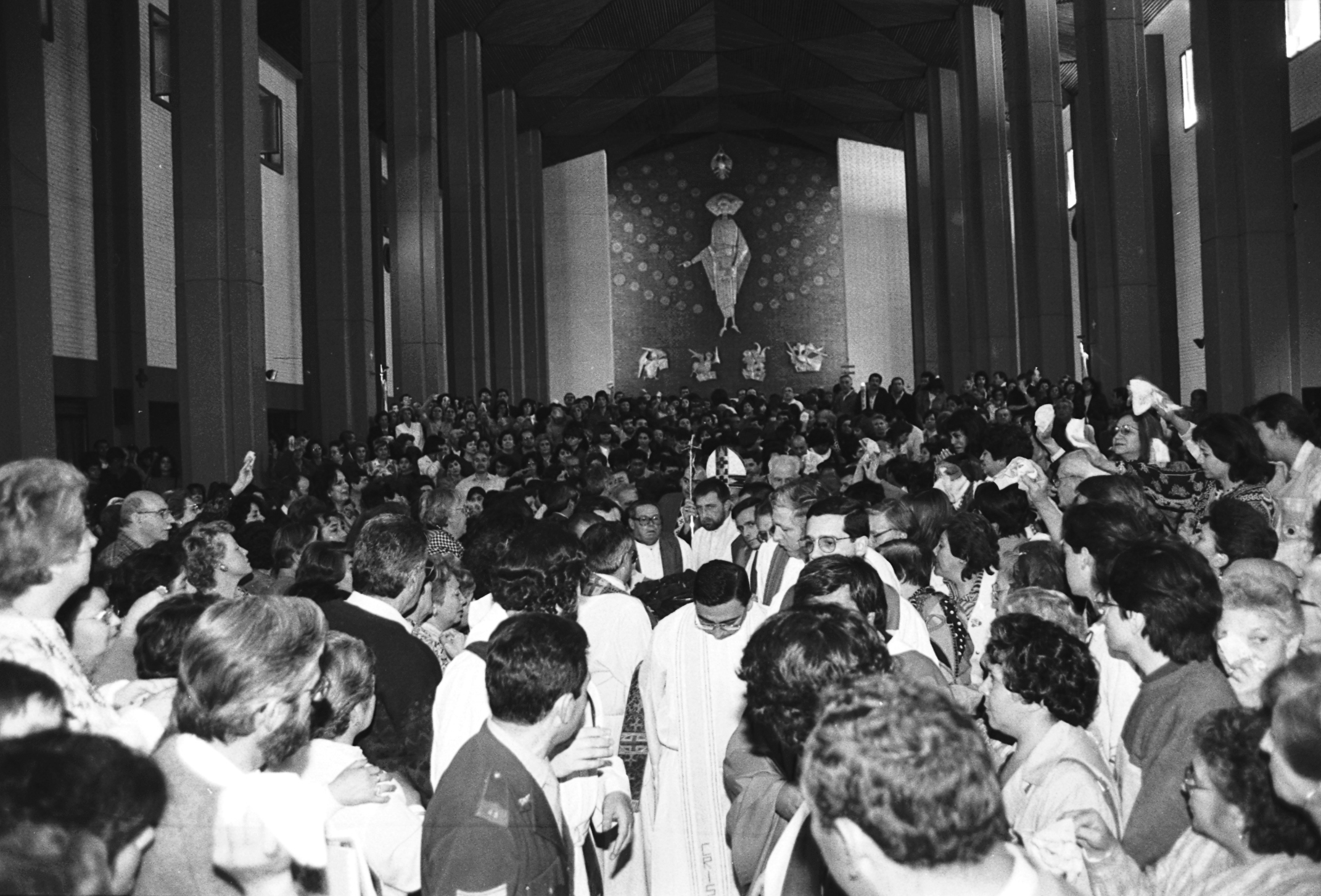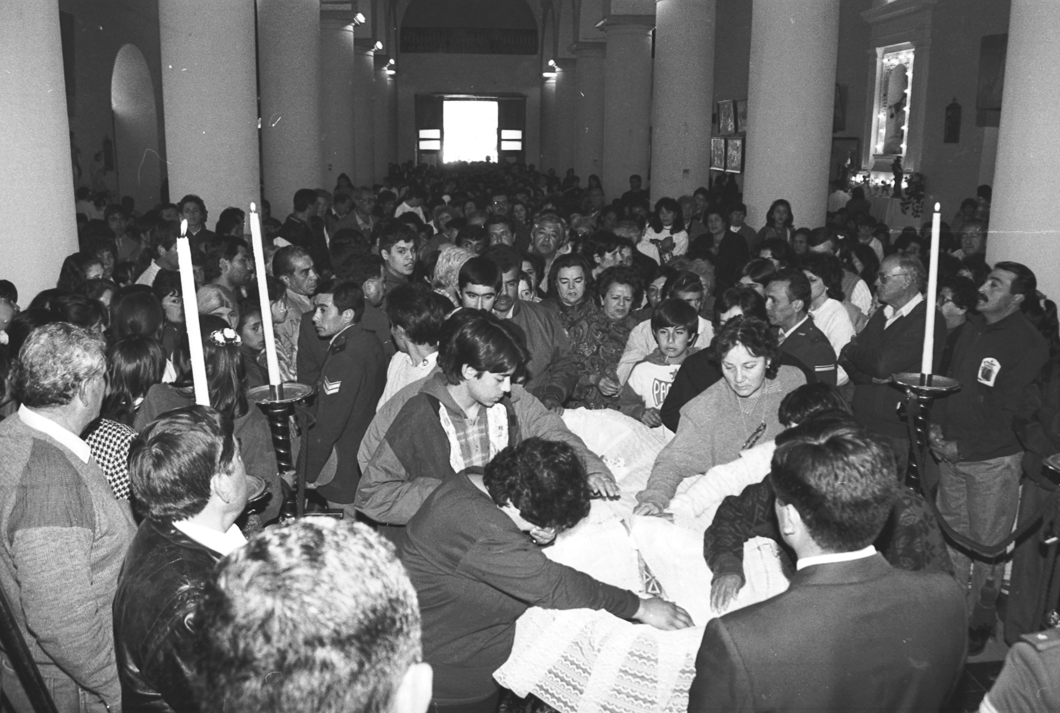 Allí, la desesperación de la multitud por estar junto a él era tal, que uno de los párrocos tuvo que pedir tranquilidad para evitar un desastre. Es que por momentos, el tumulto se volvía incontrolable y amenzaba con tornarse peligroso.