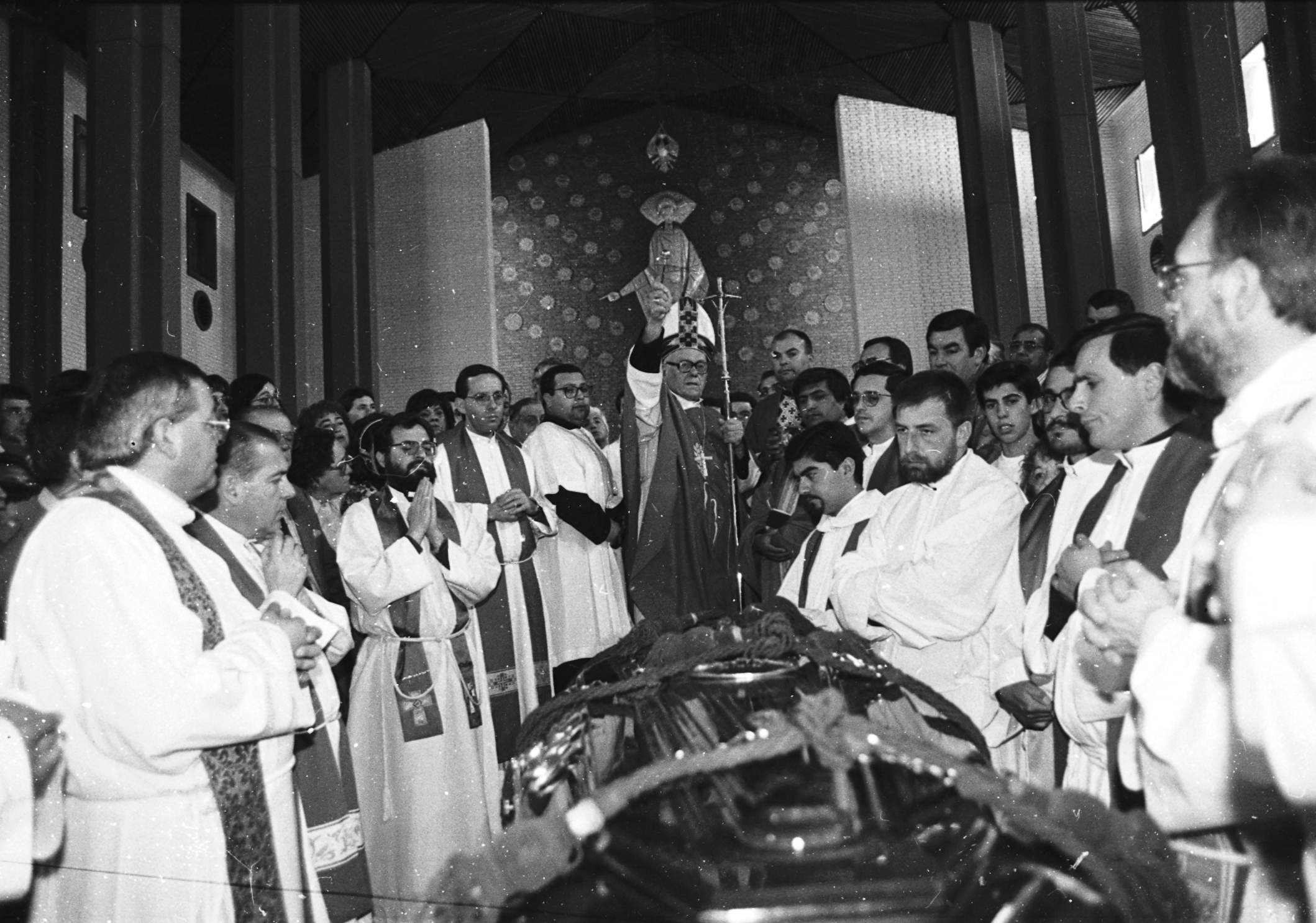 Su cuerpo fue trasladado en caravana hasta la ciudad de San Juan, donde unas cinco mil personas también lo esperaban para saludarlo una vez más. Se vivieron escenas conmovedoras, de verdadera devoción en la misa oficiada por Monseñor Di Stéfano en la Catedral y con el féretro ubicado frente al altar.