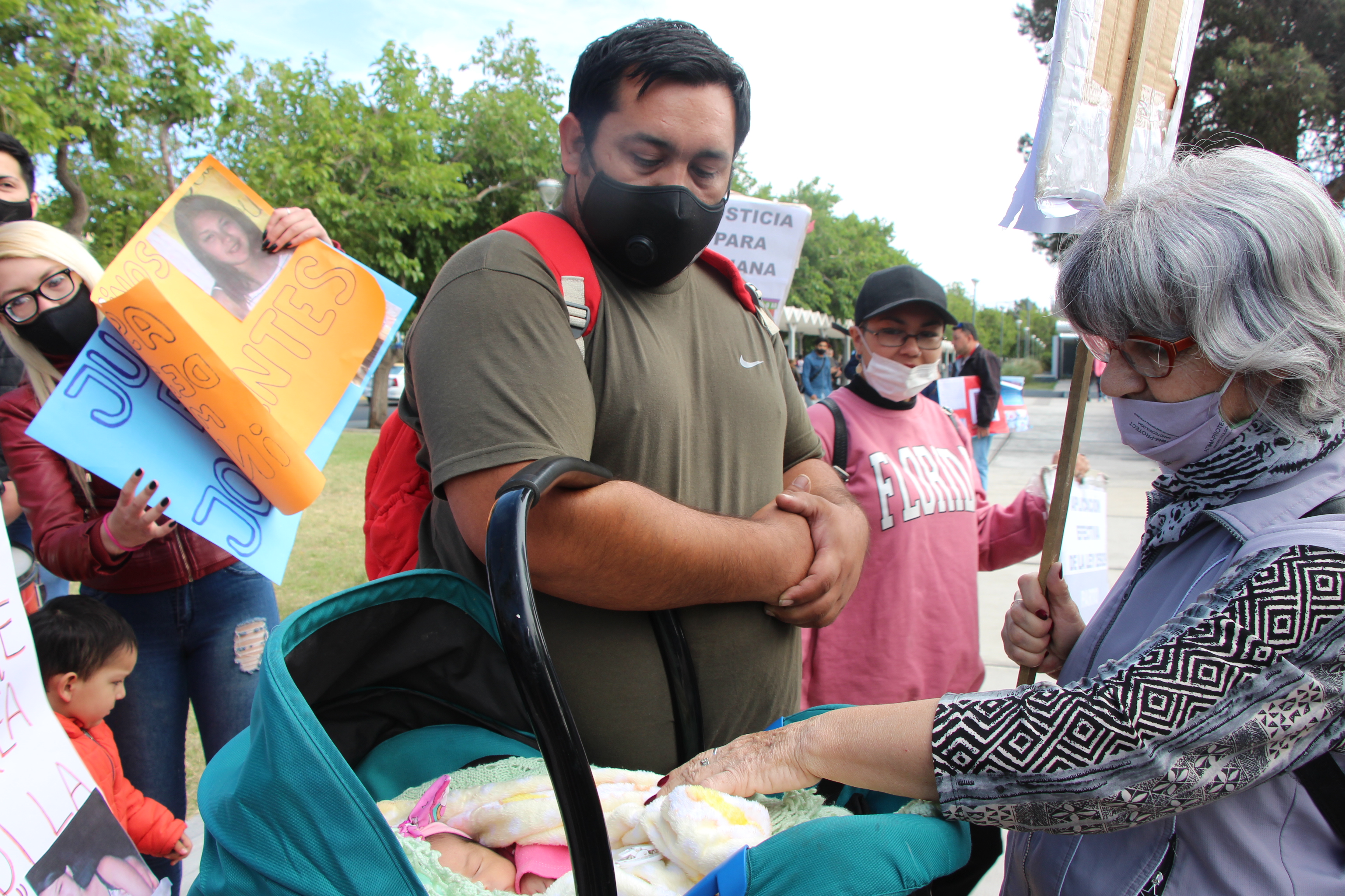 Armando Baquel caminaba lento, con la mirada fija en el frente y cargando a Ambar, su beba recién nacida, en un huevito que colgaba de su brazo. La criatura, con un moño rosa en su cabeza, dormía tranquila. Solos, encabezaron la marcha para pedir justicia por la muerte de Johana Ramírez (20) la madre de la nena, que murió a sólo una semana de parir, asegurando que lo que sucedió en el Hospital Rawson fue un caso de mala praxis.